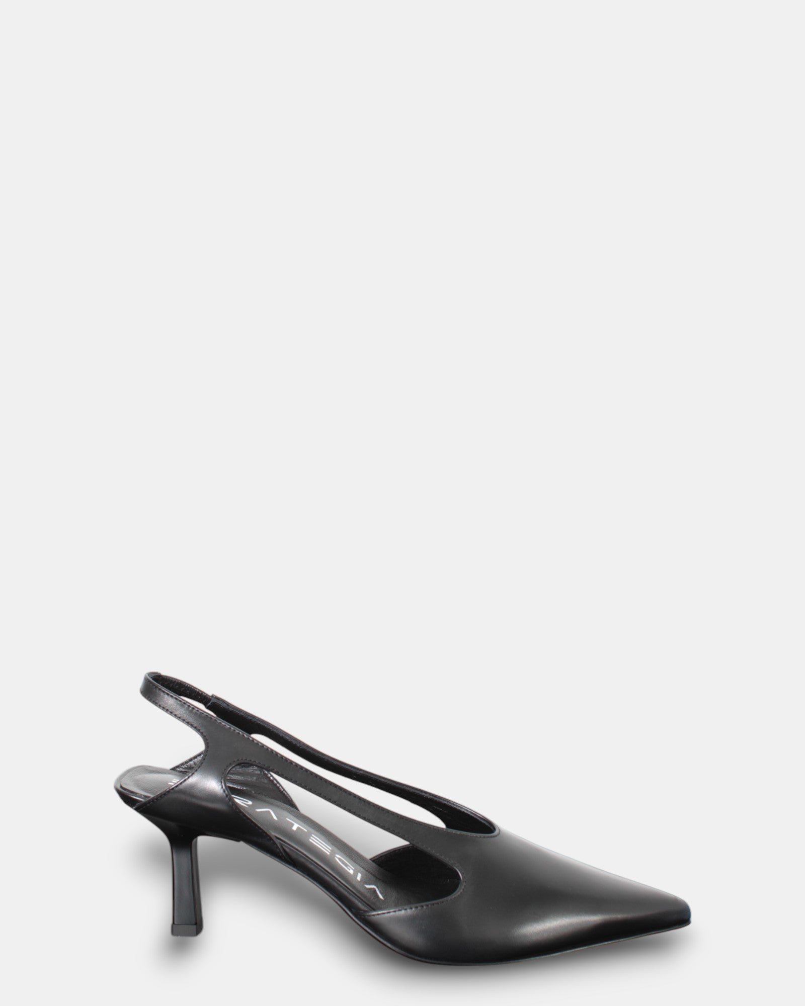 Il dècolletè modello chanel di Strategia presenta tacco con suola in vero cuoio, tomaia interamente in pelle, apertura sul collo e sul tacco del piede. Calzata regolare.