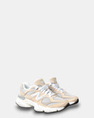 La sneaker modello 9060 di New Balance presenta tomaia in materiale sintetico e tessuto effetto leggermente scamosciato, logo stampato su ambi due i margini, intersuola ABZORB e chiusura con lacci. La calzata è regolare