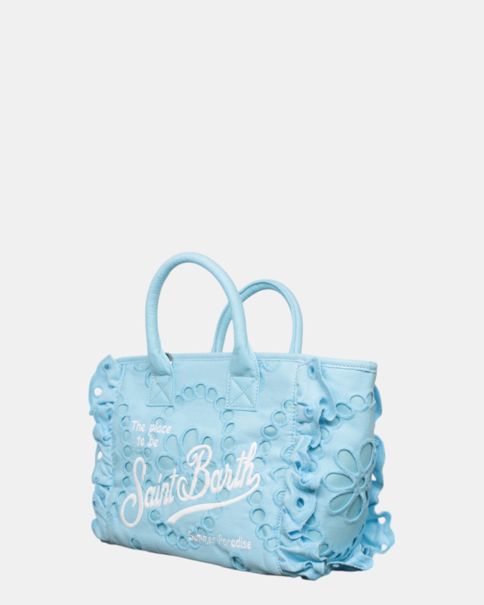 - DETTAGLI: tessuto in pizzo sangallo, logo stampato, patta interna con chiusura zip, tasca interna , tracolla removibile