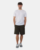 Il bermuda di Woc presenta elastico con coulisse, due tasche frontali, una sul retro , dalla mano fresca dovuta alla sua composizione in 70% poliestere, 25% viscosa e 5% elastan. Si consiglia lavaggio a massimo 30 gradi. Il modello è alto 1,78 e indossa una M