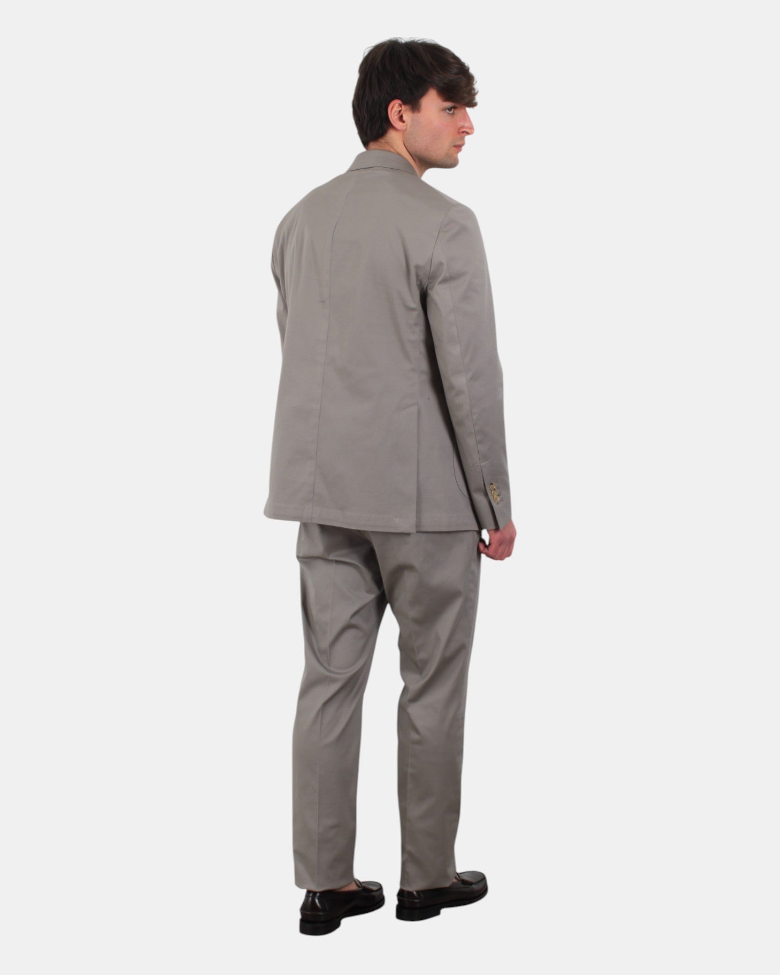 L'abito monopetto di Bollani presenta chiusura a due bottoni, due spacchetti laterali e due tasche a toppa, il pantalone presenta due tasche frontali, chiusura con zip e bottone, dalla mano fresca dovuta alla sua composizione in 98% cotone e 2% elastan. Si consiglia lavaggio a secco. Il modello è alto 1,78 m e indossa una 48