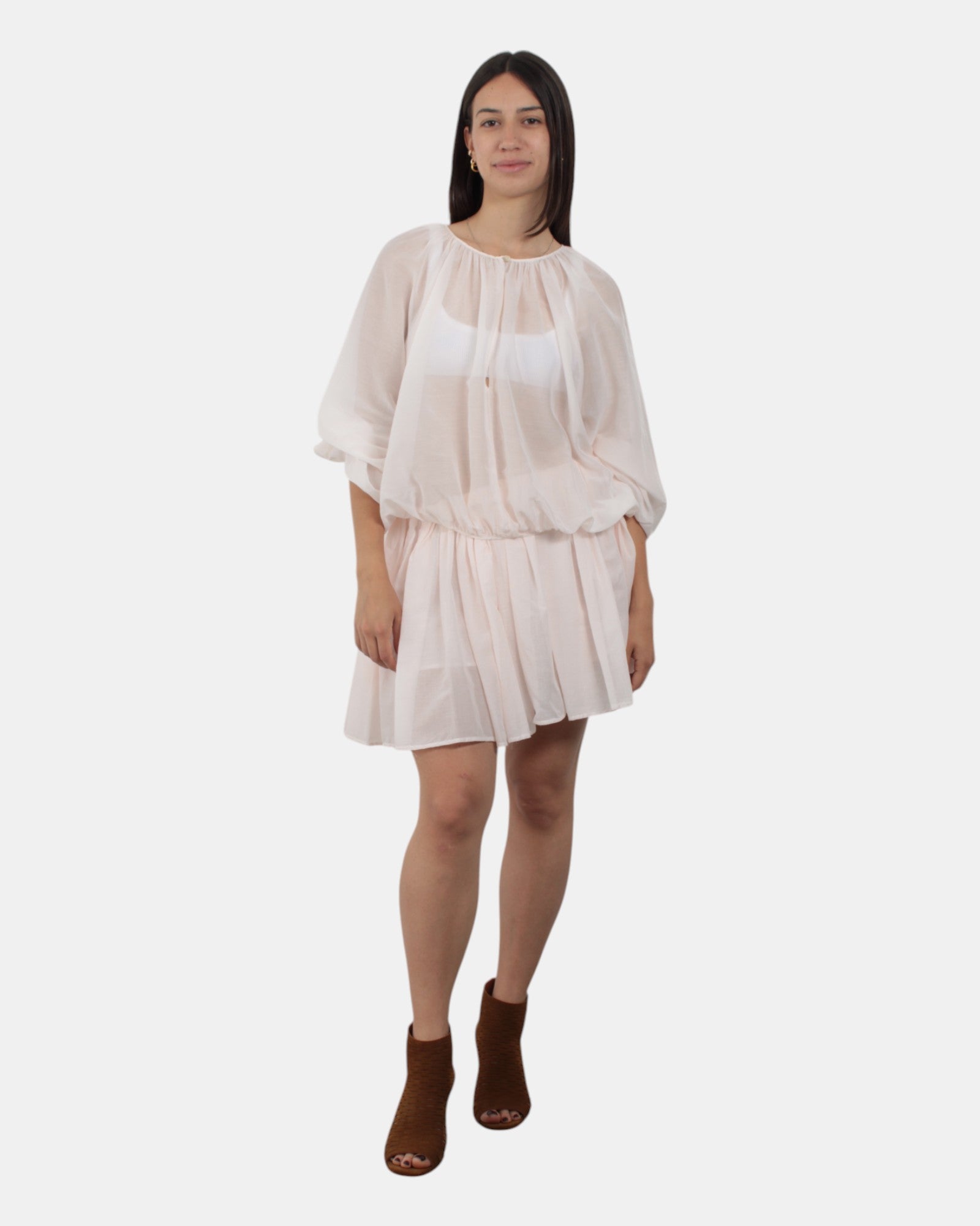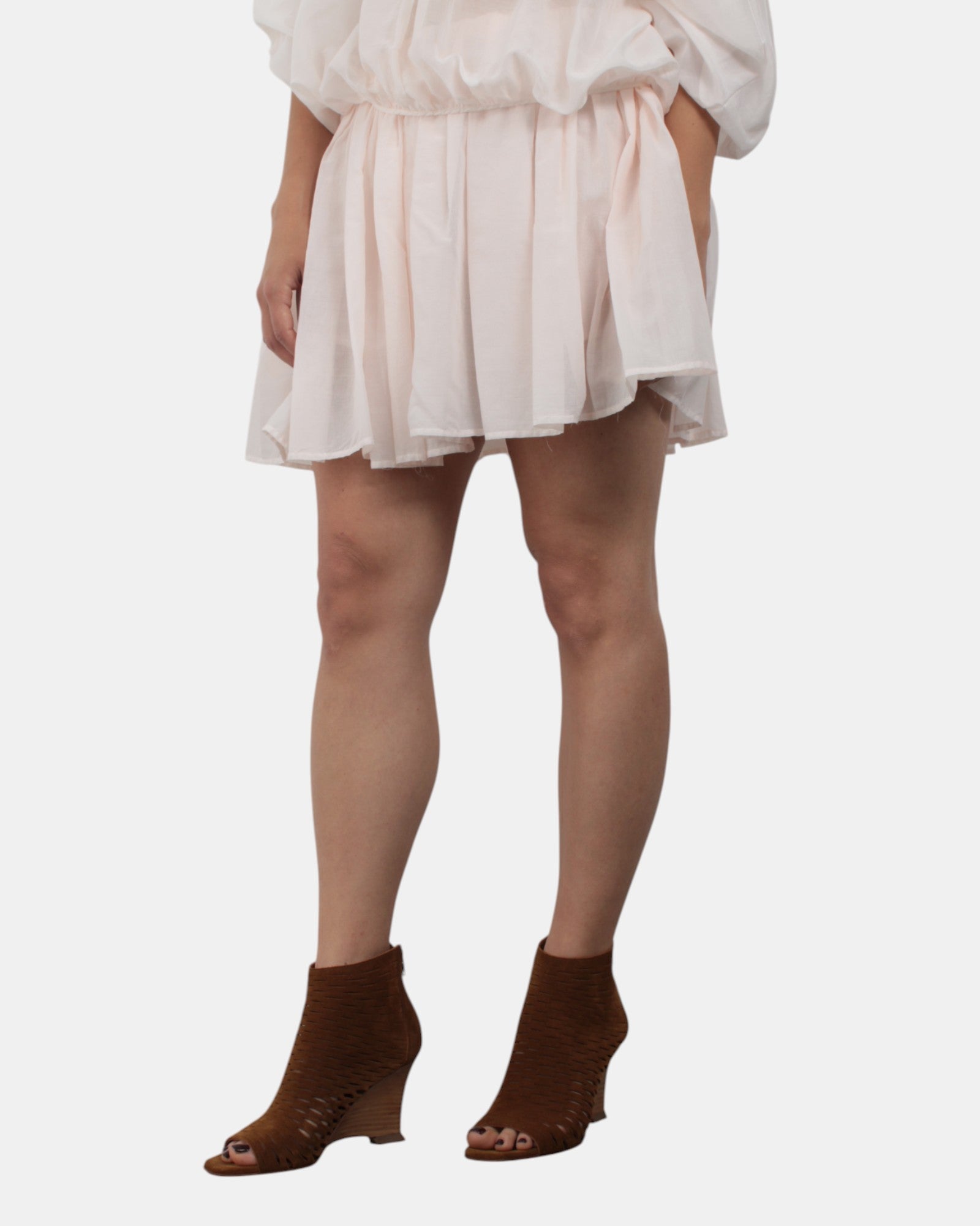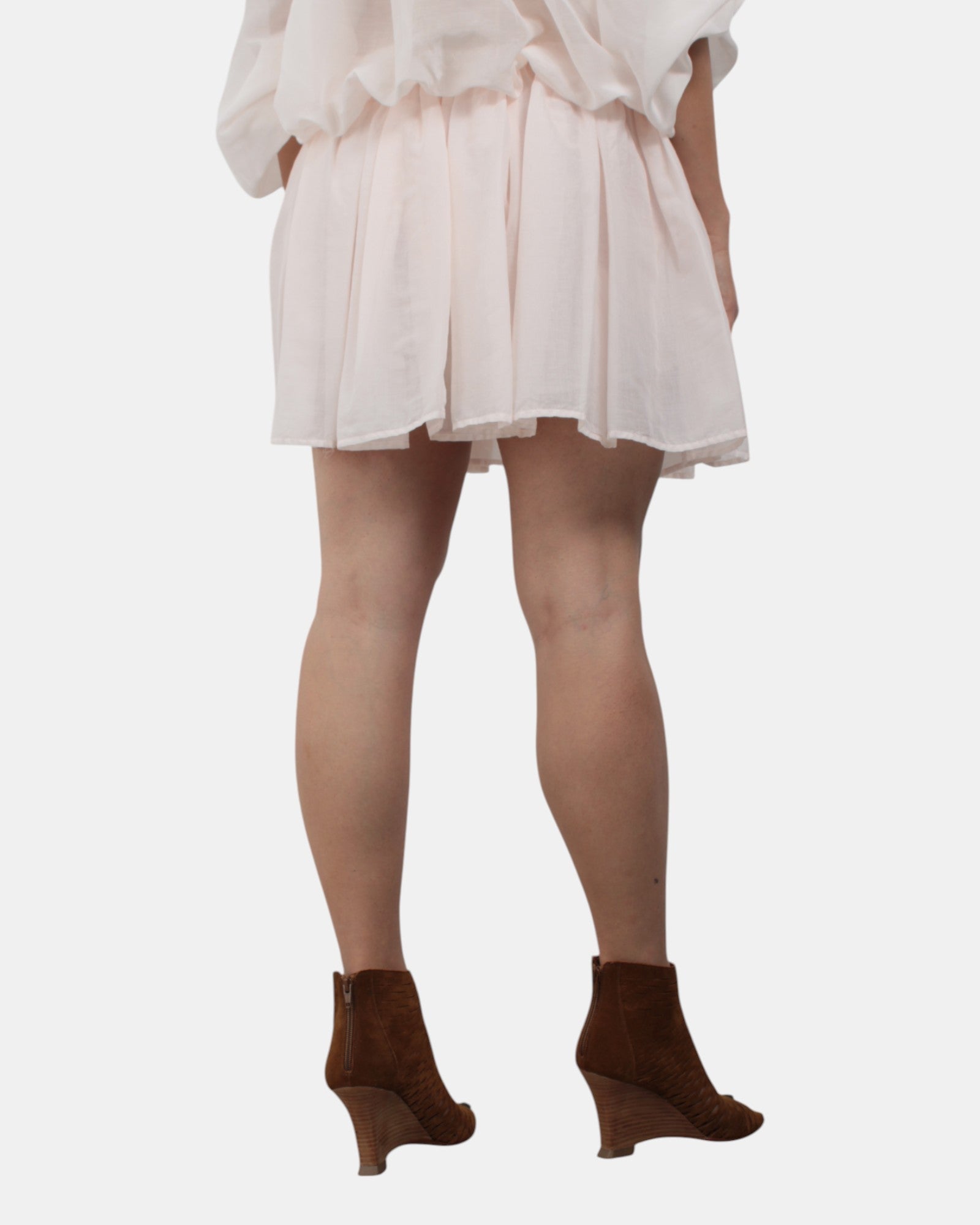 Mini gonna Jucca arricciata con vita elasticizzata, realizzata in 100% cotone. Si consiglia lavaggio delicato a massimo 30 gradi. La modella è alta 1,68 e indossa una 42.