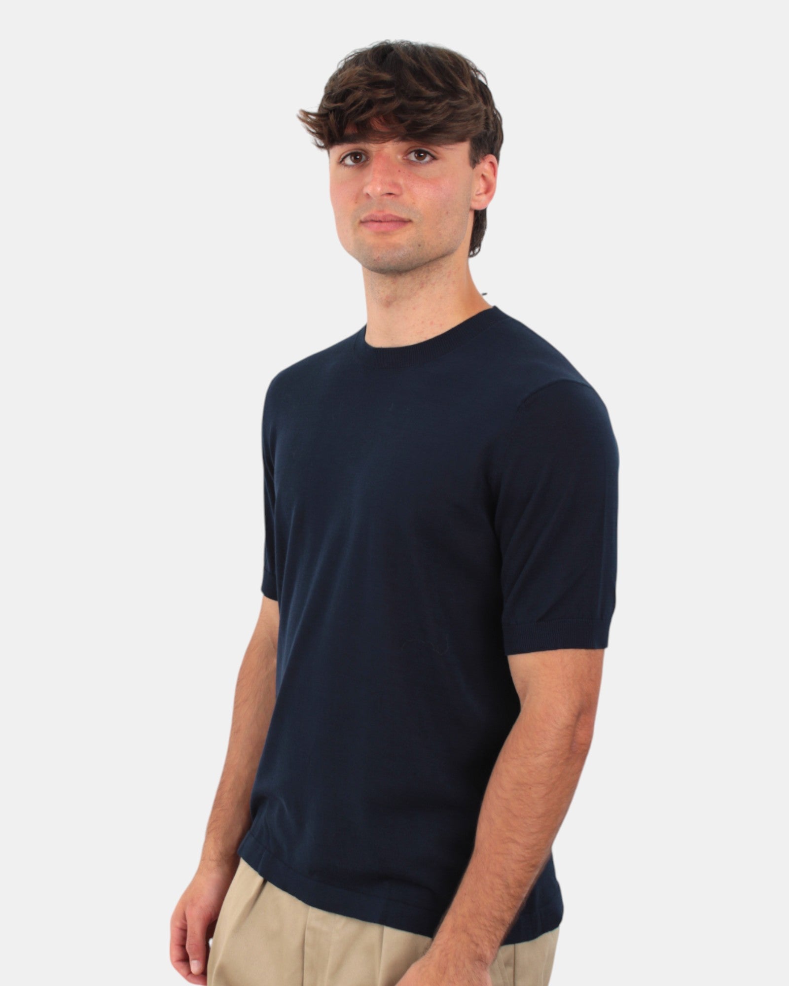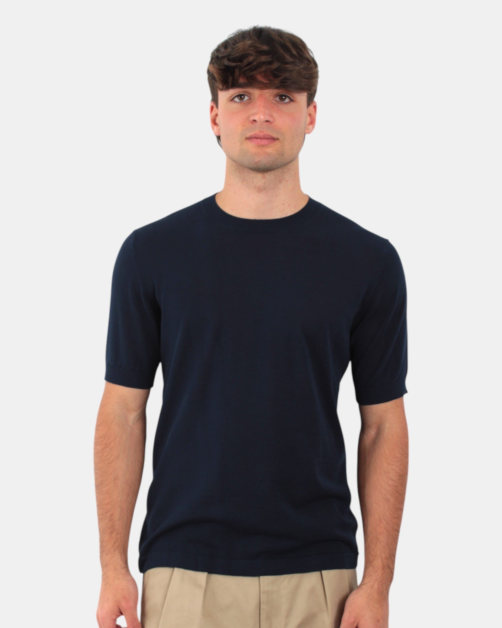 La maglia a girocollo di Della Spiga presenta fantasia monocolore, collo, fondo e polsi a costine, dalla mano fresca e morbida dovuta alla sua composizione in 100% cotone . Si consiglia il lavaggio a mano. Il modello è alto 1,78 m e indossa una 50.