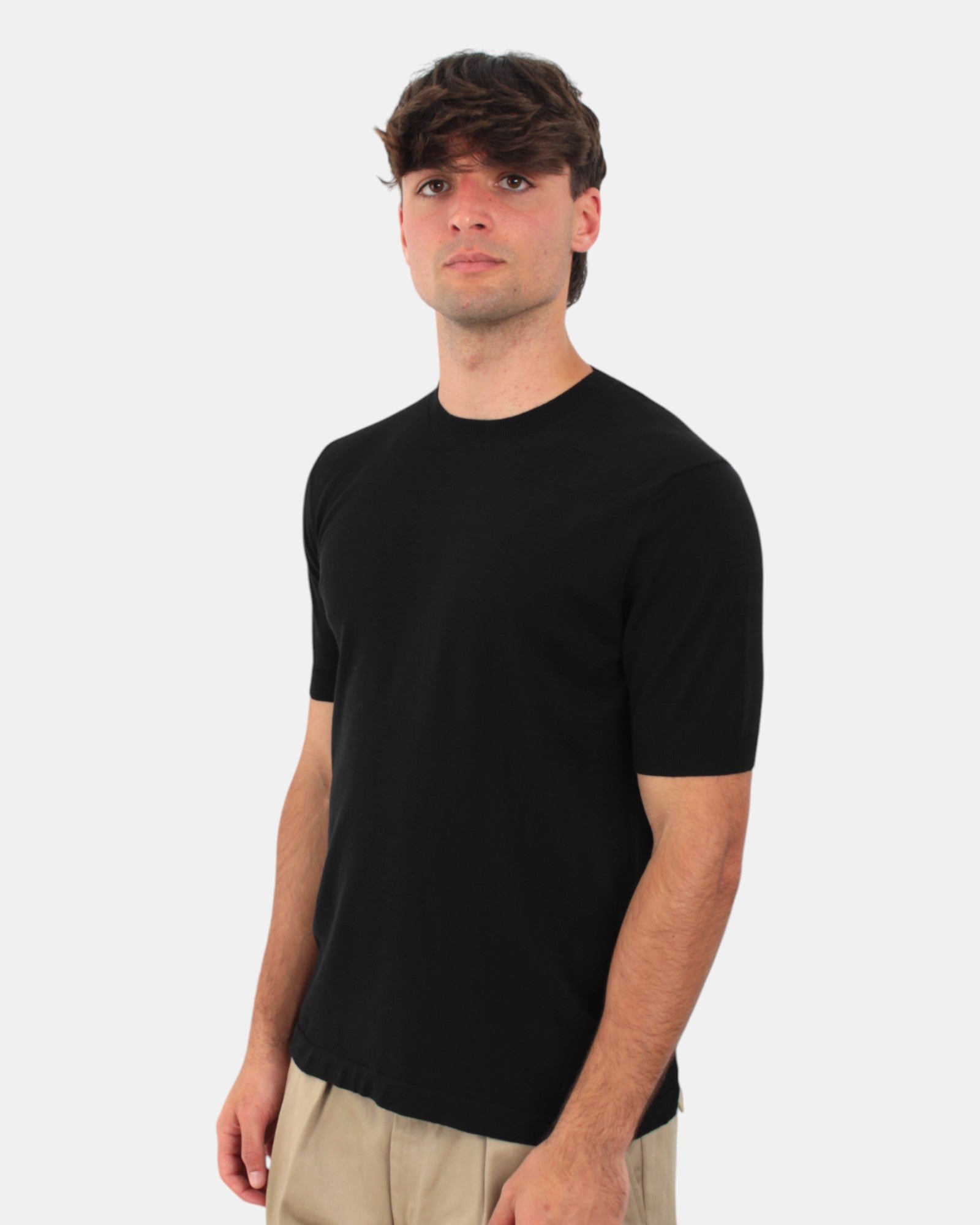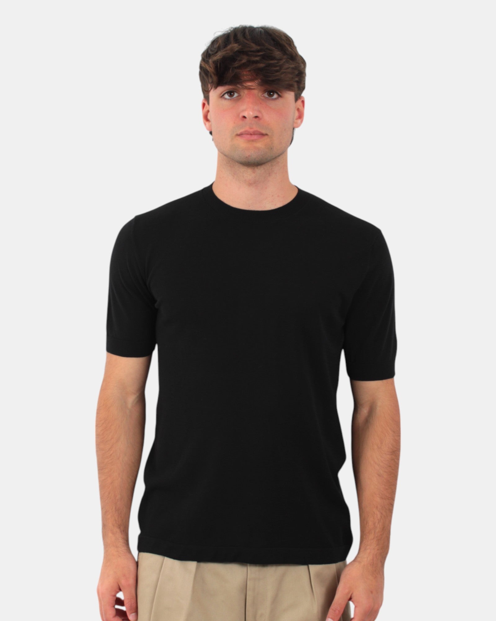 La maglia a girocollo di Della Spiga presenta fantasia monocolore, collo, fondo e polsi a costine, dalla mano fresca e morbida dovuta alla sua composizione in 100% cotone . Si consiglia il lavaggio a mano. Il modello è alto 1,78 m e indossa una 50.