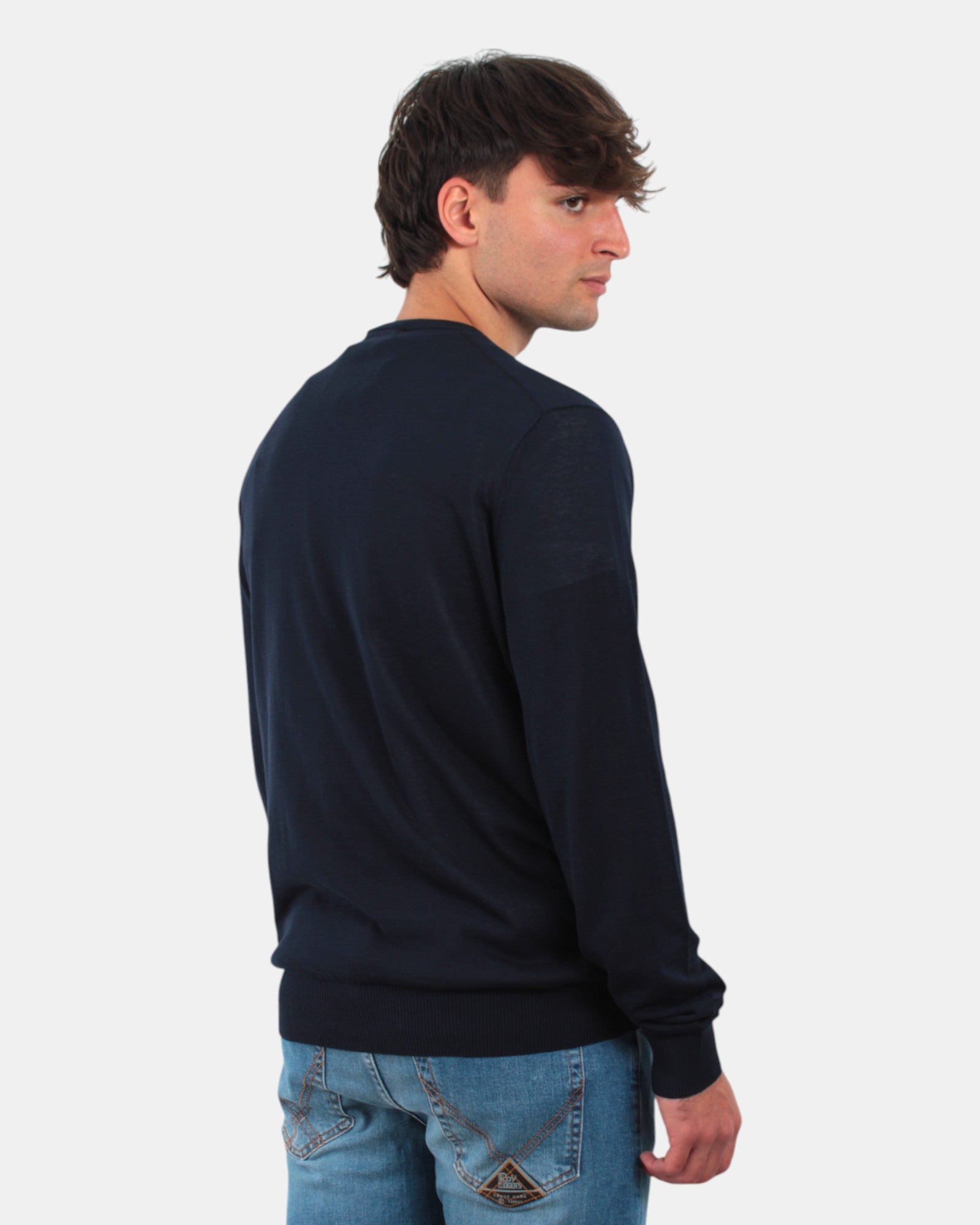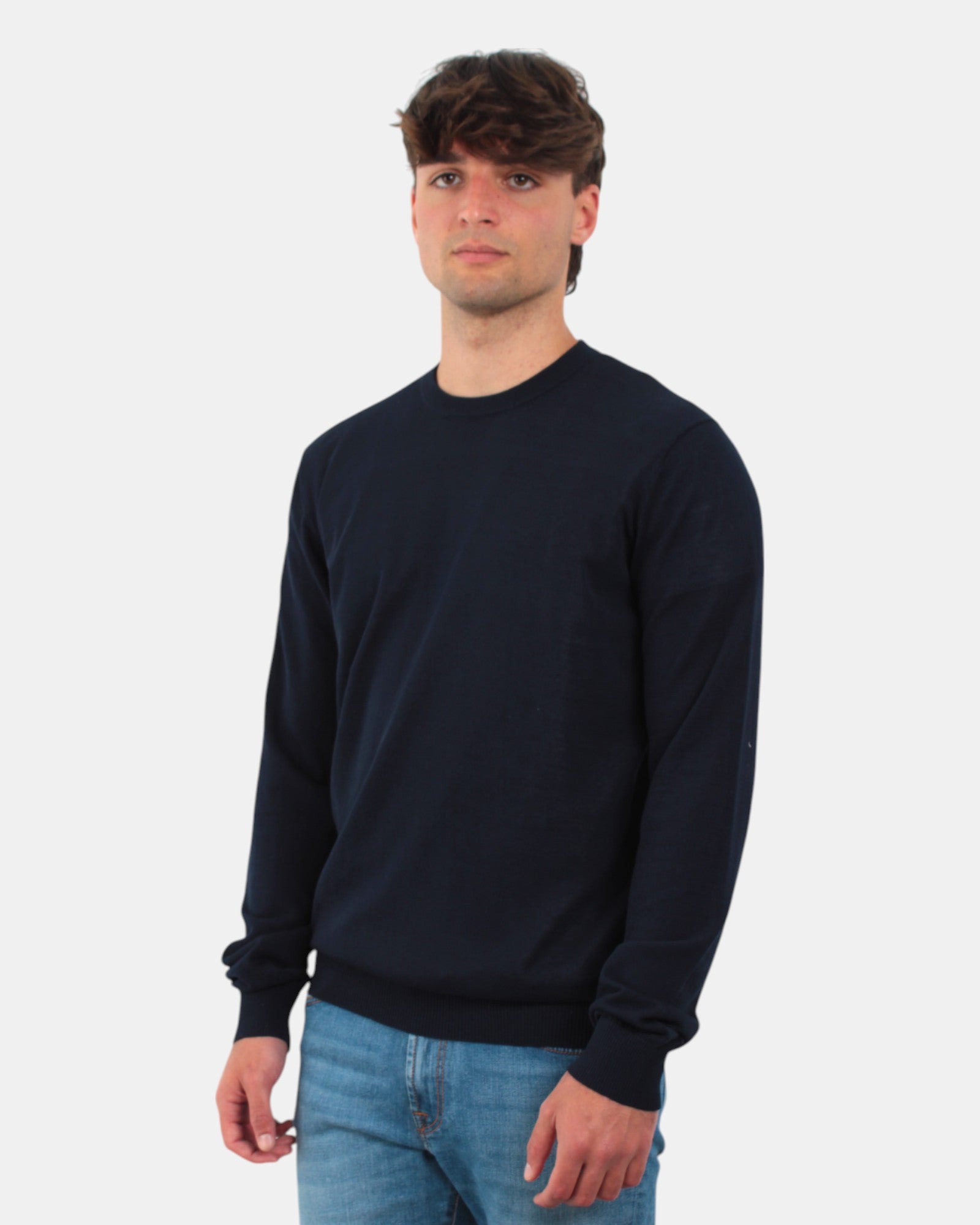 La maglia a girocollo a manica lunga di Della Spiga presenta collo, fondo e manica a costine, fantasia monocolore, dalla mano fresca dovuta alla sua composizione in 100% cotone. SI consiglia lavaggio a massimo 30 gradi. Il modello è alto 1,78 m e indossa una 50