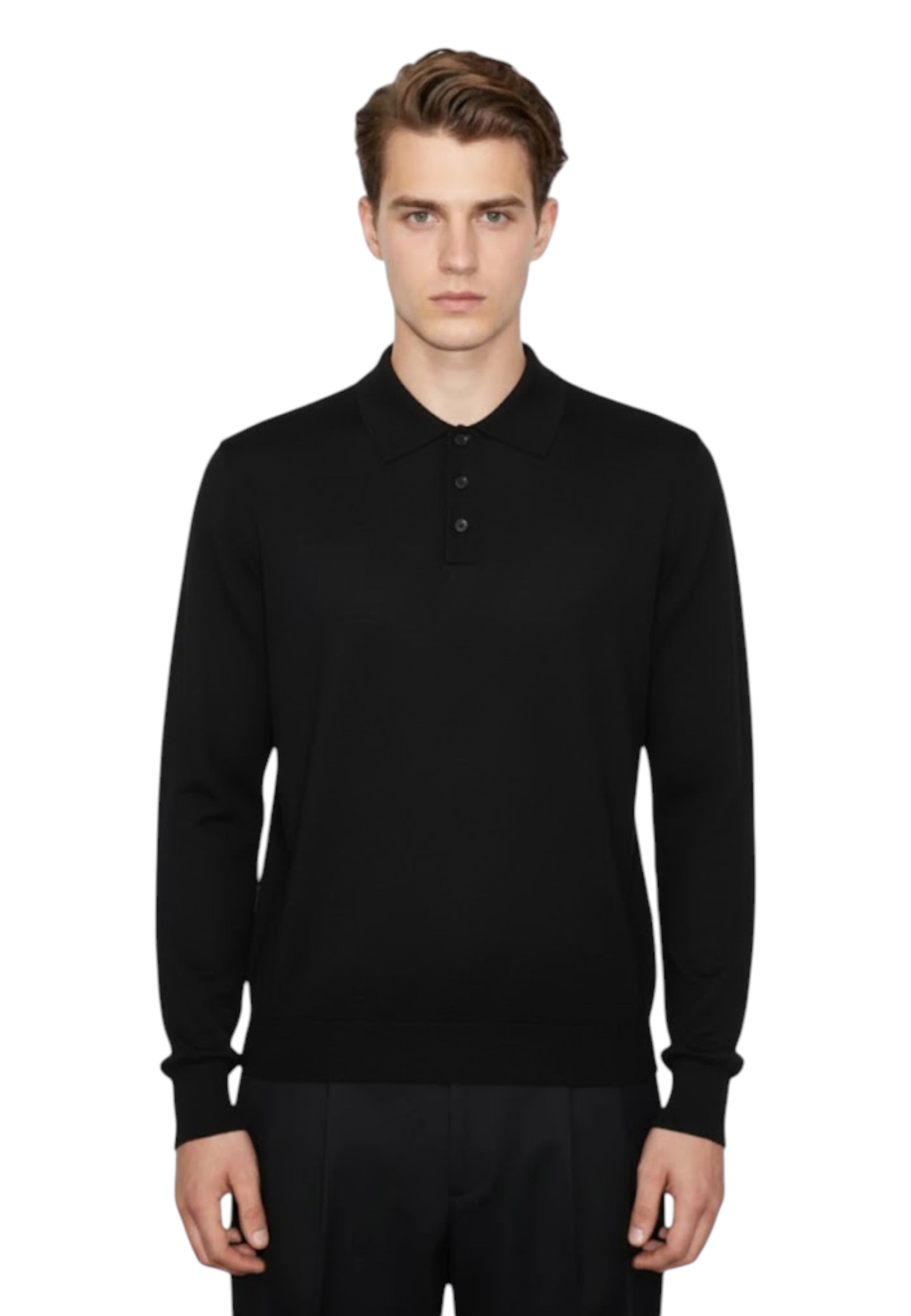 Realizzata in pregiata lana, questa polo garantisce una sensazione di morbidezza e calore perfetta per le stagioni più fresche. Il design classico con colletto e bottoni la rende versatile, ideale per essere indossata sia in contesti formali sia casual.