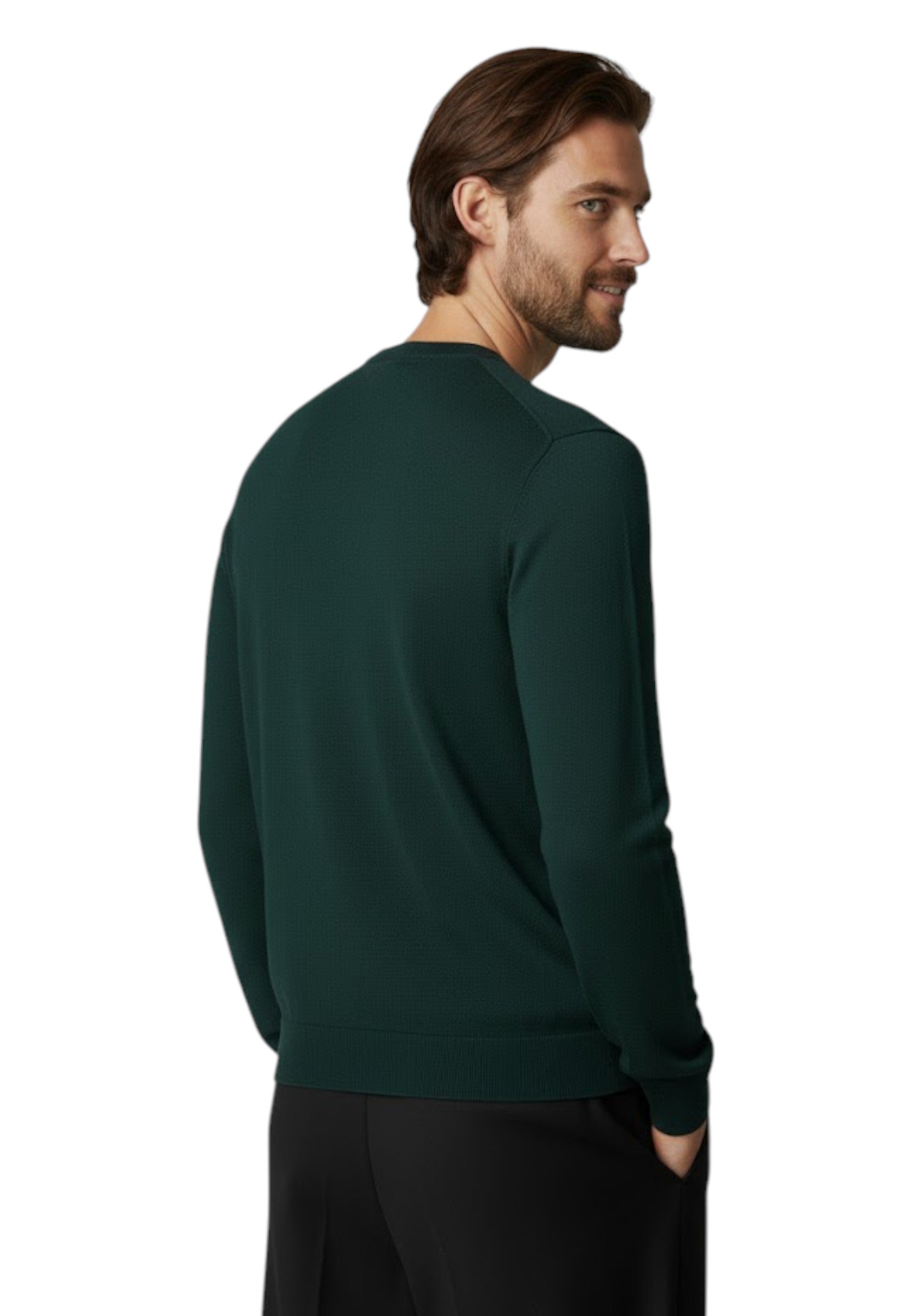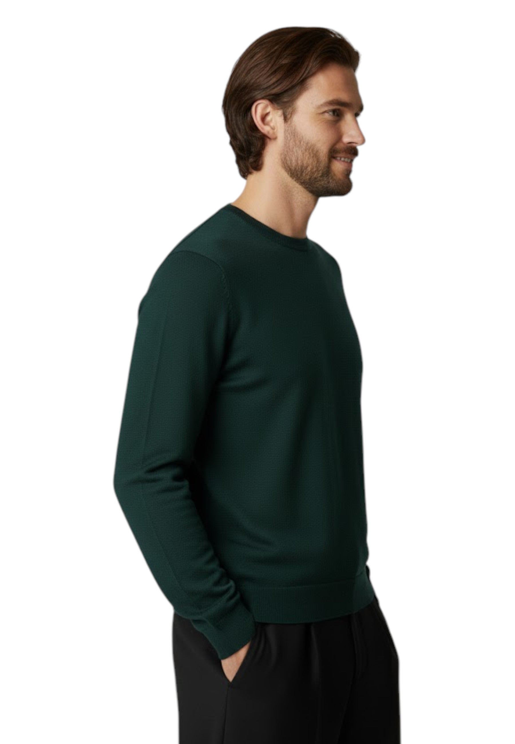 Il girocollo manica lunga Kangra è un capo basico ma estremamente raffinato, realizzato in pura lana extrafine al 100%. La lavorazione rasata calata su finezza fine dona un aspetto compatto ma confortevole, ideale per l’autunno, l’inverno e le giornate più fresche. Il nero profondo lo rende un passe-partout da abbinare facilmente a qualsiasi outfit, mentre i dettagli a costine su collo, polsi e fondo garantiscono una vestibilità regolare e sempre curata. Un must per l’uomo che cerca qualità e stile senza tempo.