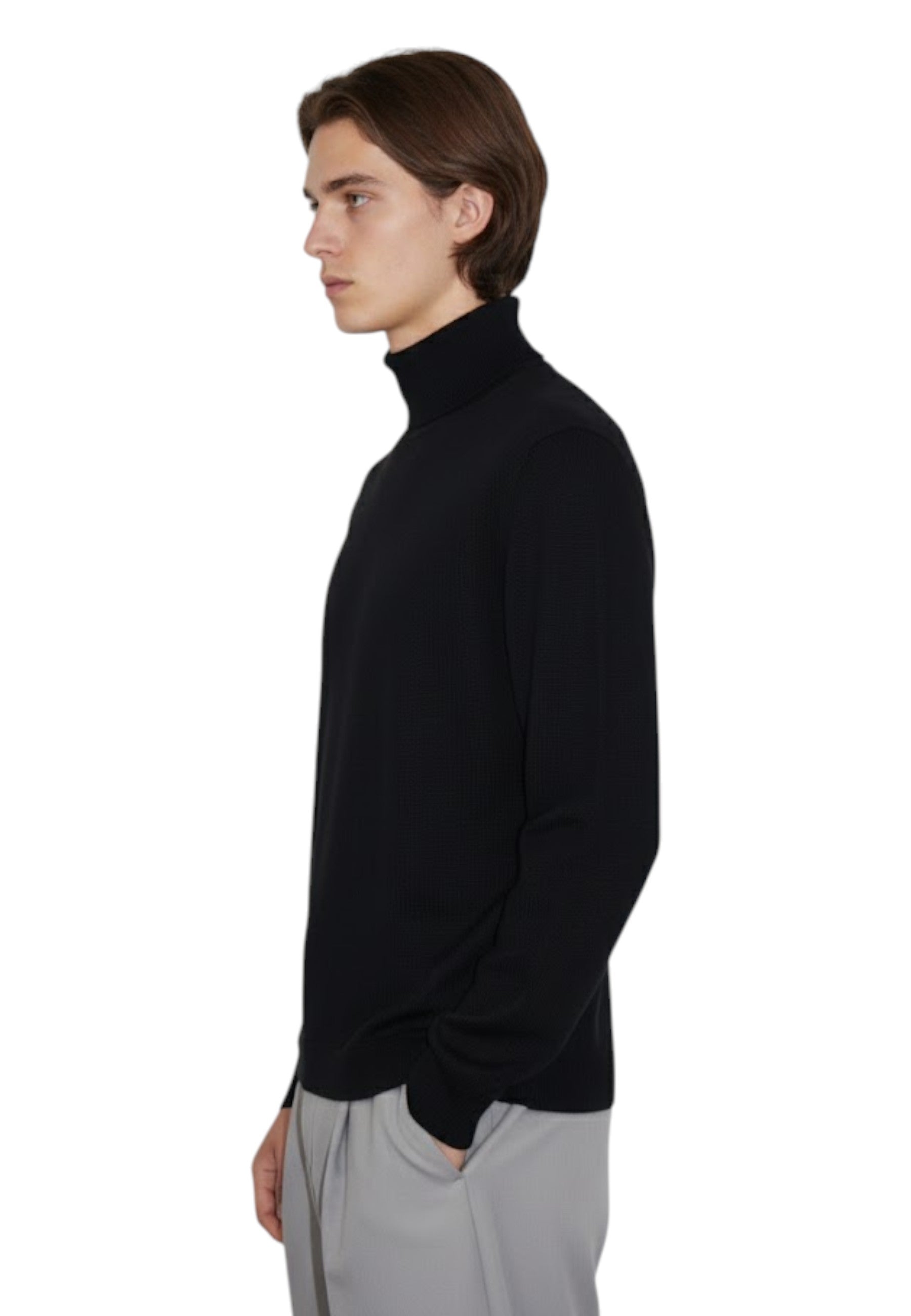 Un classico senza tempo firmato Kangra, questo dolcevita a manica lunga è realizzato in 100% pura lana, offrendo una sensazione di calore, morbidezza e comfort assoluto.