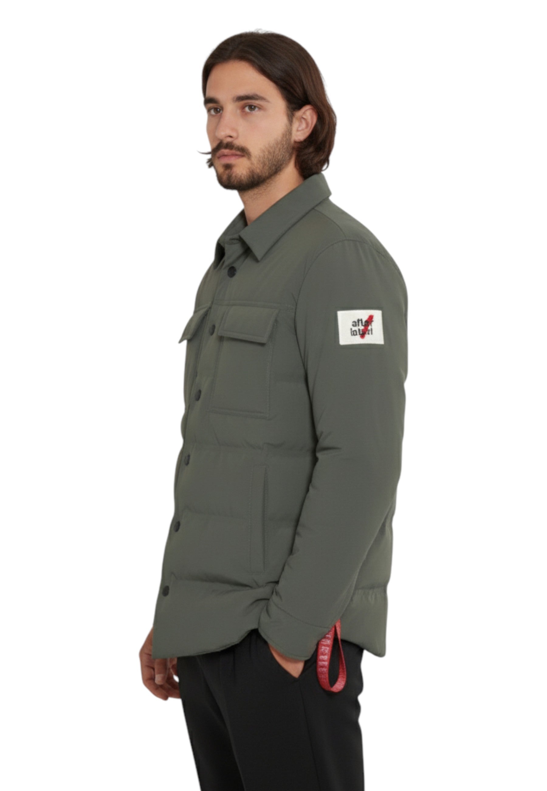 La chiusura frontale con bottoni a pressione, le tasche doppie sul petto con pattina e le tasche laterali a filetto offrono funzionalità senza rinunciare all’estetica. I bottoni regolabili sui polsi assicurano una vestibilità personalizzata, mentre i dettagli iconici del brand — come la patch After Label sulla manica sinistra e il distintivo pendaglio rosso portalogo — confermano l’autenticità e lo stile deciso del marchio.