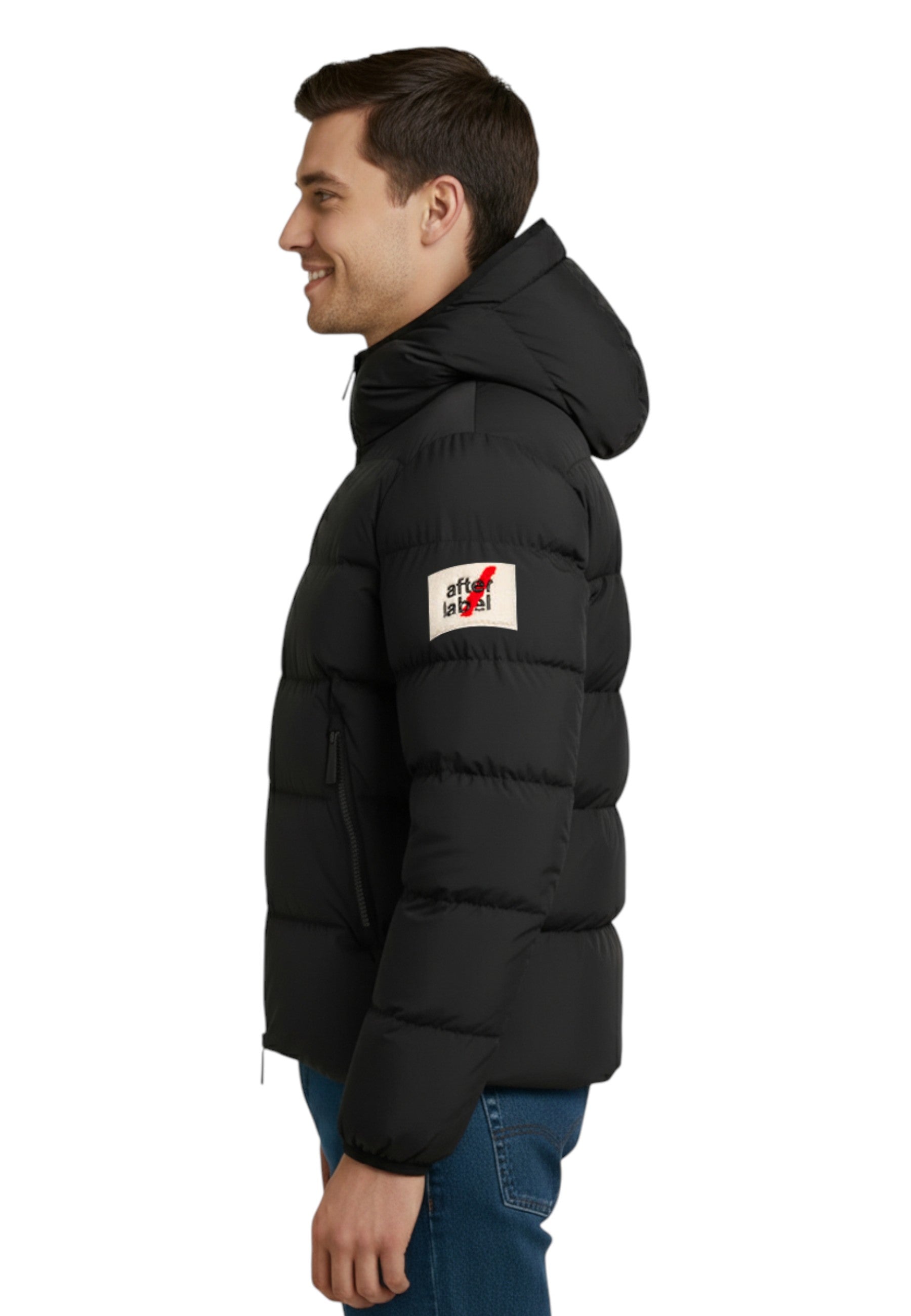 Il cappuccio e i polsi sono rifiniti con bordo elastico logato, per una maggiore aderenza e un tocco sportivo distintivo. I dettagli firmati After Label — la patch sulla manica sinistra, lo slash termoapplicato sul retro e il pendaglio rosso portalogo — confermano l’identità forte e riconoscibile del brand.