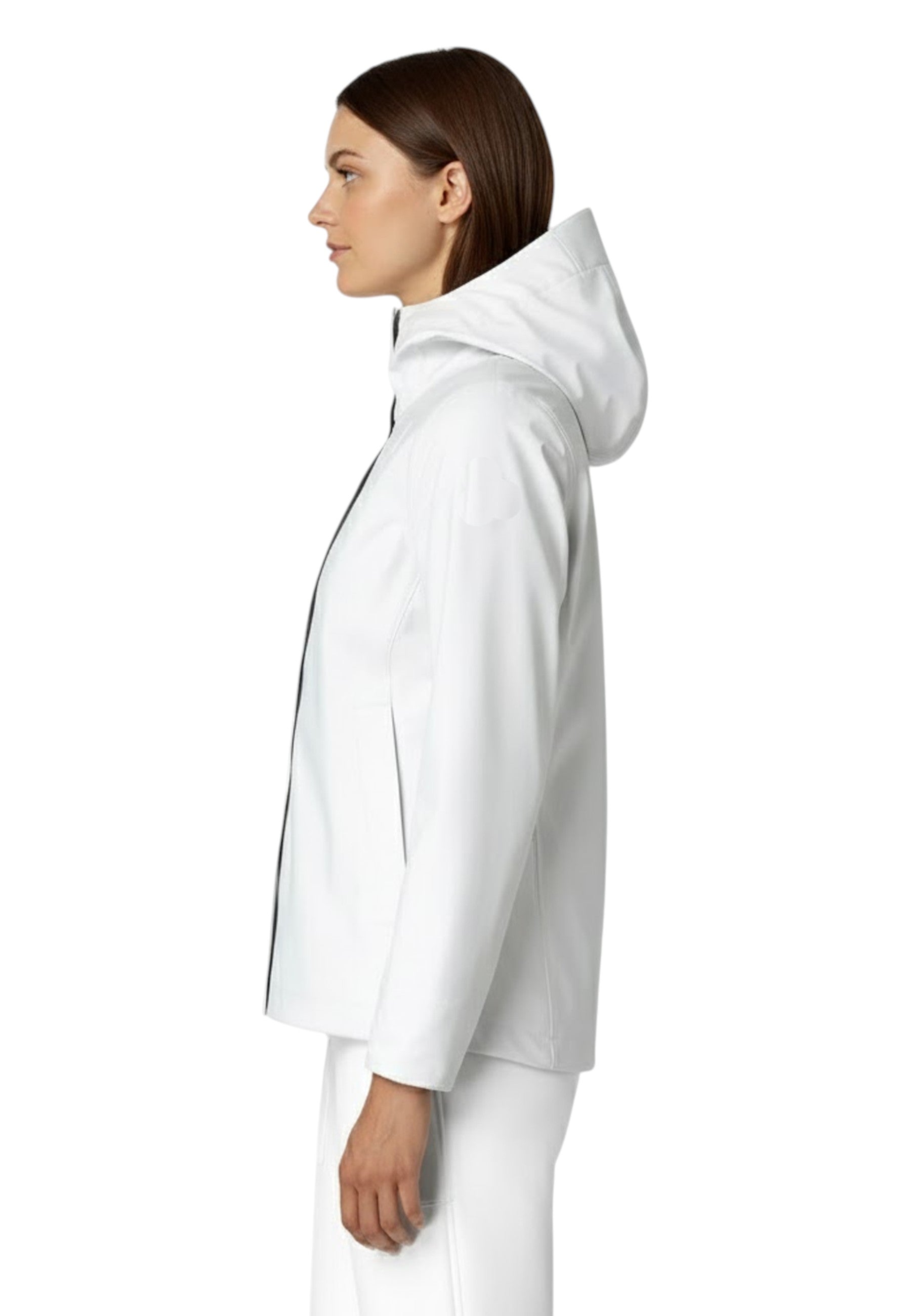 Le cuciture termonastrate a contrasto aggiungono un dettaglio tecnico ed estetico distintivo. Il modello è completato da un cappuccio fisso regolabile con corda elastica, chiusura con zip coperta da patta, due tasche con zip e logo in silicone bianco. Il grado di calore leggero lo rende adatto a un utilizzo quotidiano senza rinunciare al comfort.