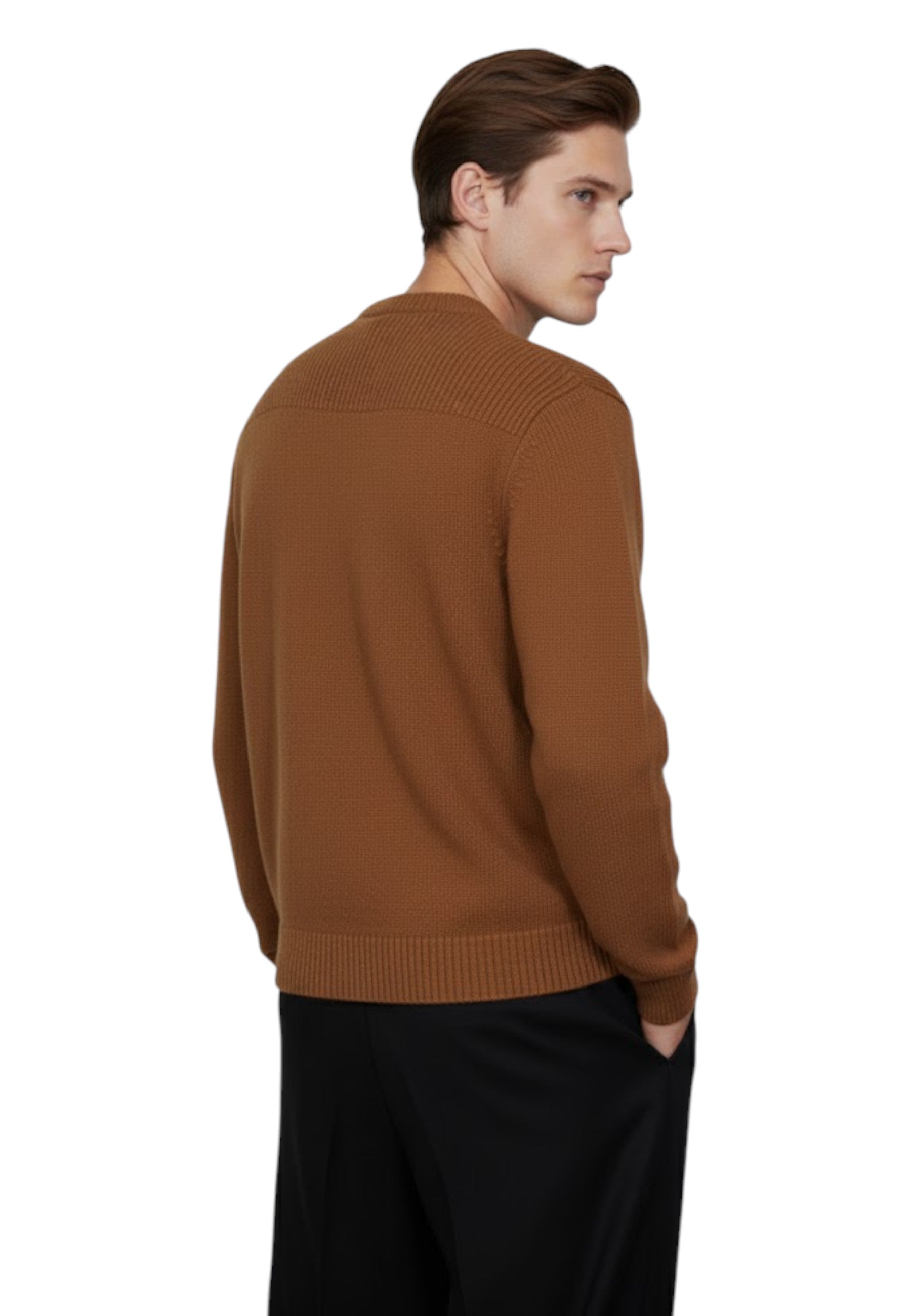 Realizzato in lana vergine al 100%, assicura calore e morbidezza, mantenendo al contempo una linea sofisticata. La sua tonalità calda e la lavorazione di alta qualità lo rendono il pezzo chiave per affrontare con stile le giornate più fredde.