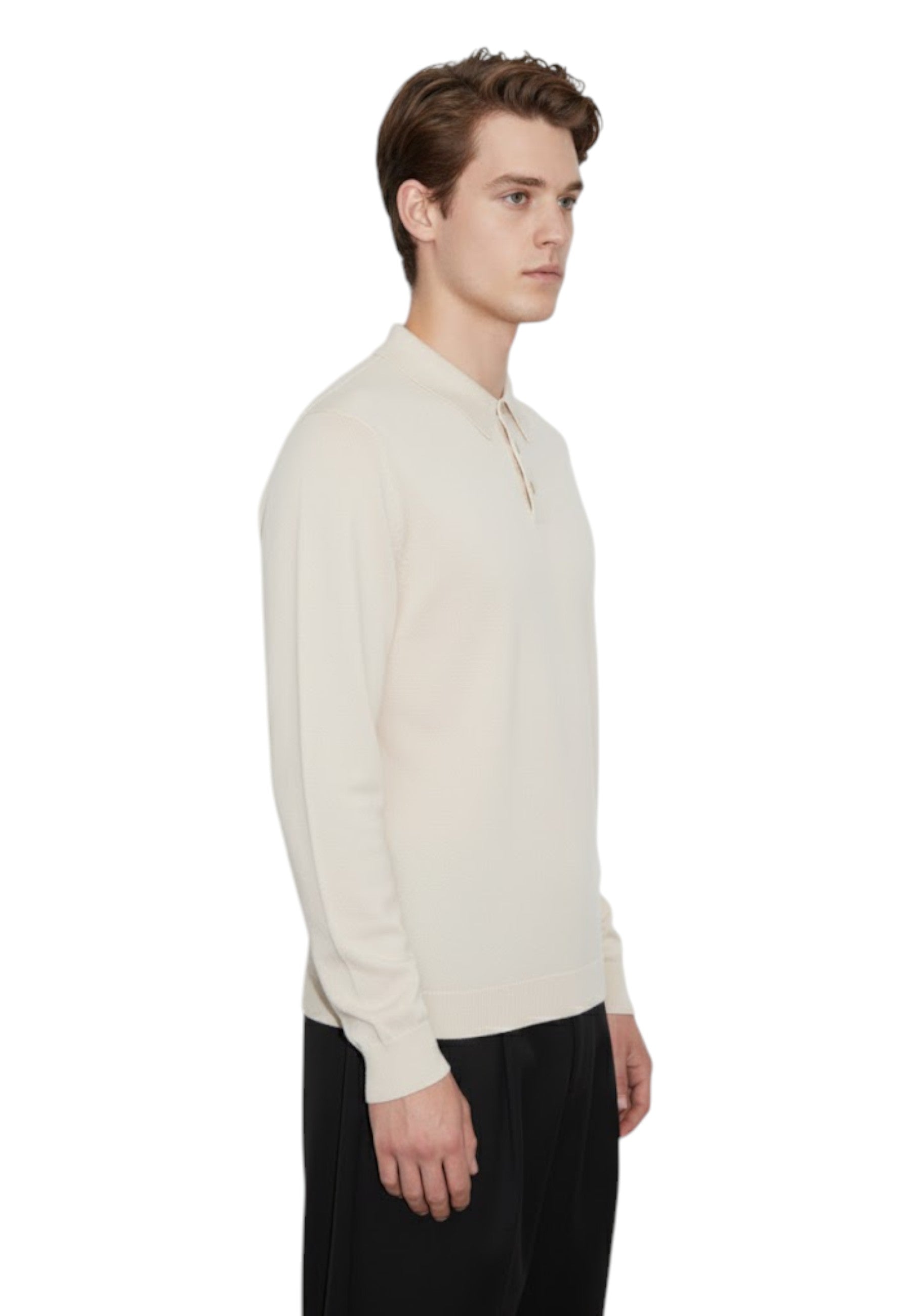 L'utilizzo della Lana Merino al 100% garantisce morbidezza e calore, rendendo questa polo perfetta per le giornate più fresche. Il design sobrio con il colletto classico e i bottoni a contrasto offre un tocco di eleganza discreta che si adatta sia a look formali che casual.