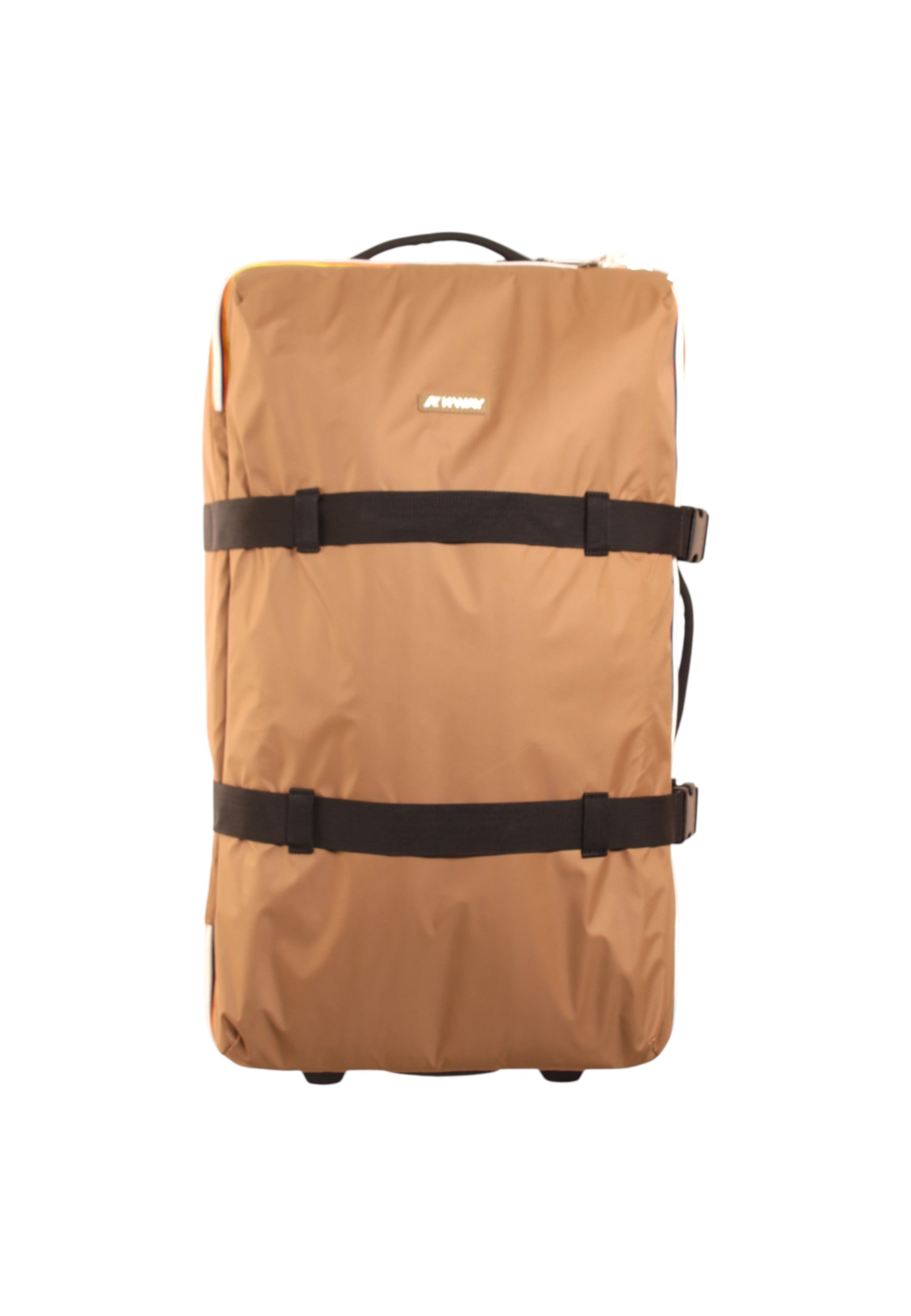 - Dettaglio: Quattro ruote doppie, tasche funzionali, manici superiori e laterali, chiusura con zip a doppio cursore