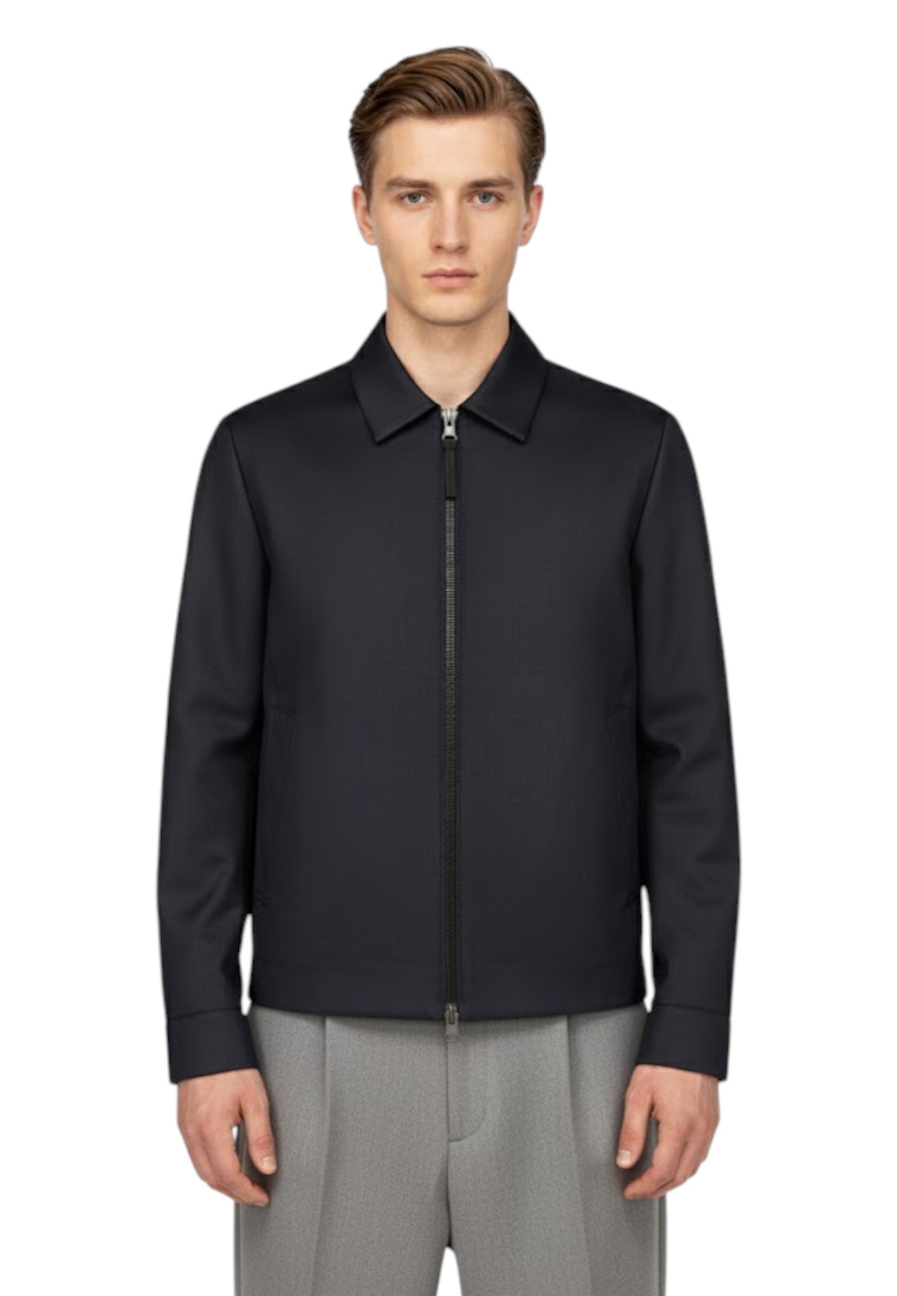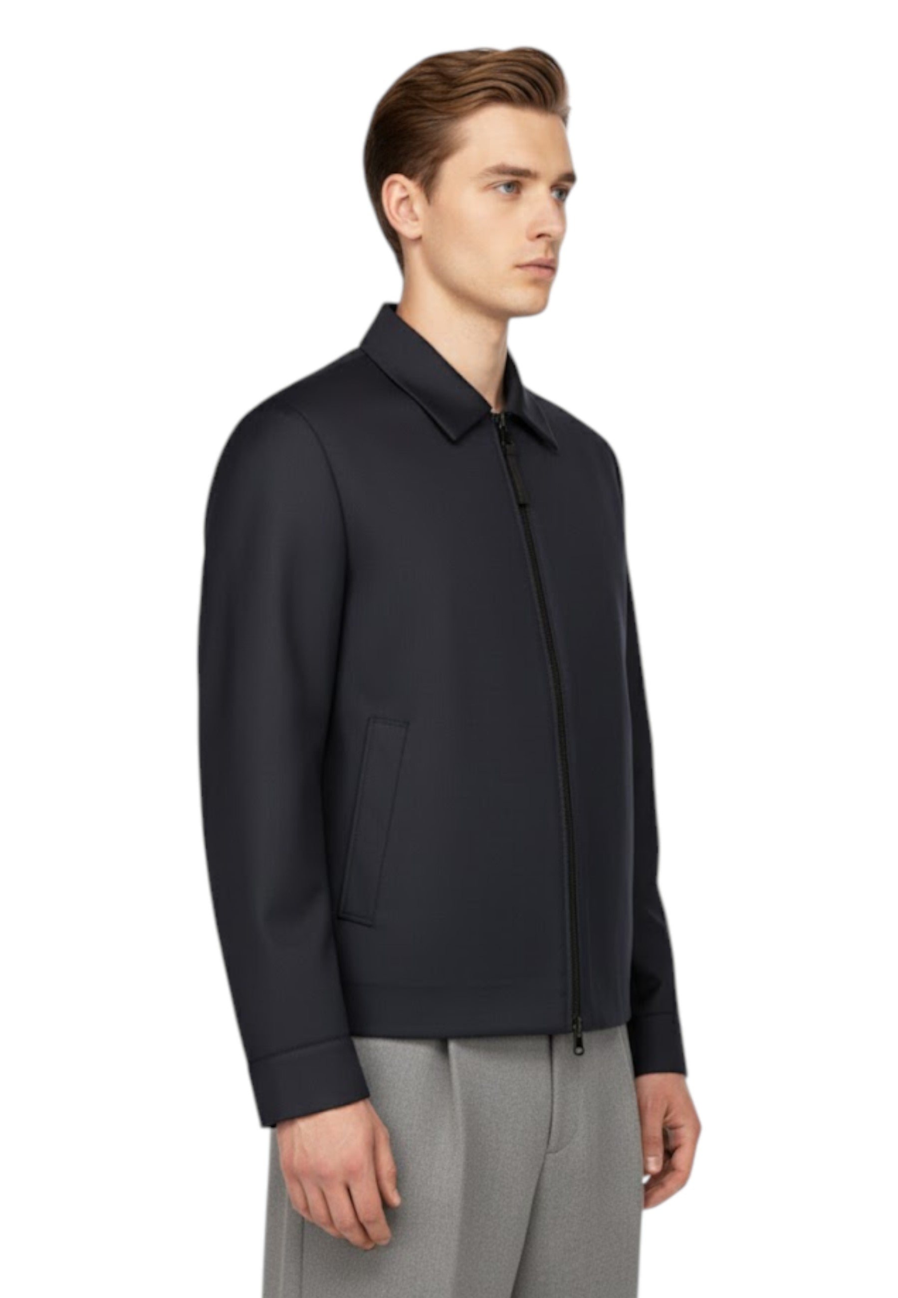 Creato con una raffinata combinazione di lana e poliestere, il giubbotto offre calore e leggerezza, garantendo al contempo una durata eccezionale. Il design minimalista e sofisticato lo rende perfetto sia per occasioni formali che casual.