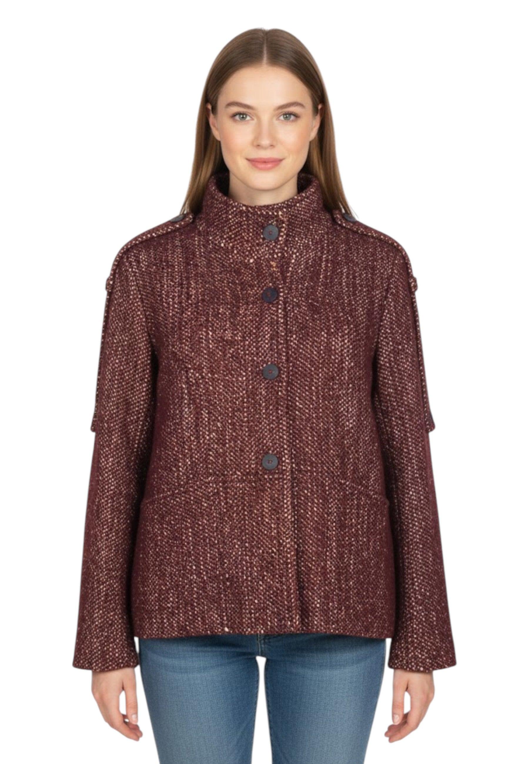 Composto da una miscela di lana e poliestere, questo cappotto garantisce una perfetta combinazione di calore e leggerezza. Il design minimale con chiusura a bottoni aggiunge un tocco di classe a qualsiasi outfit, mentre il collo alto offre un'ulteriore barriera contro il freddo.