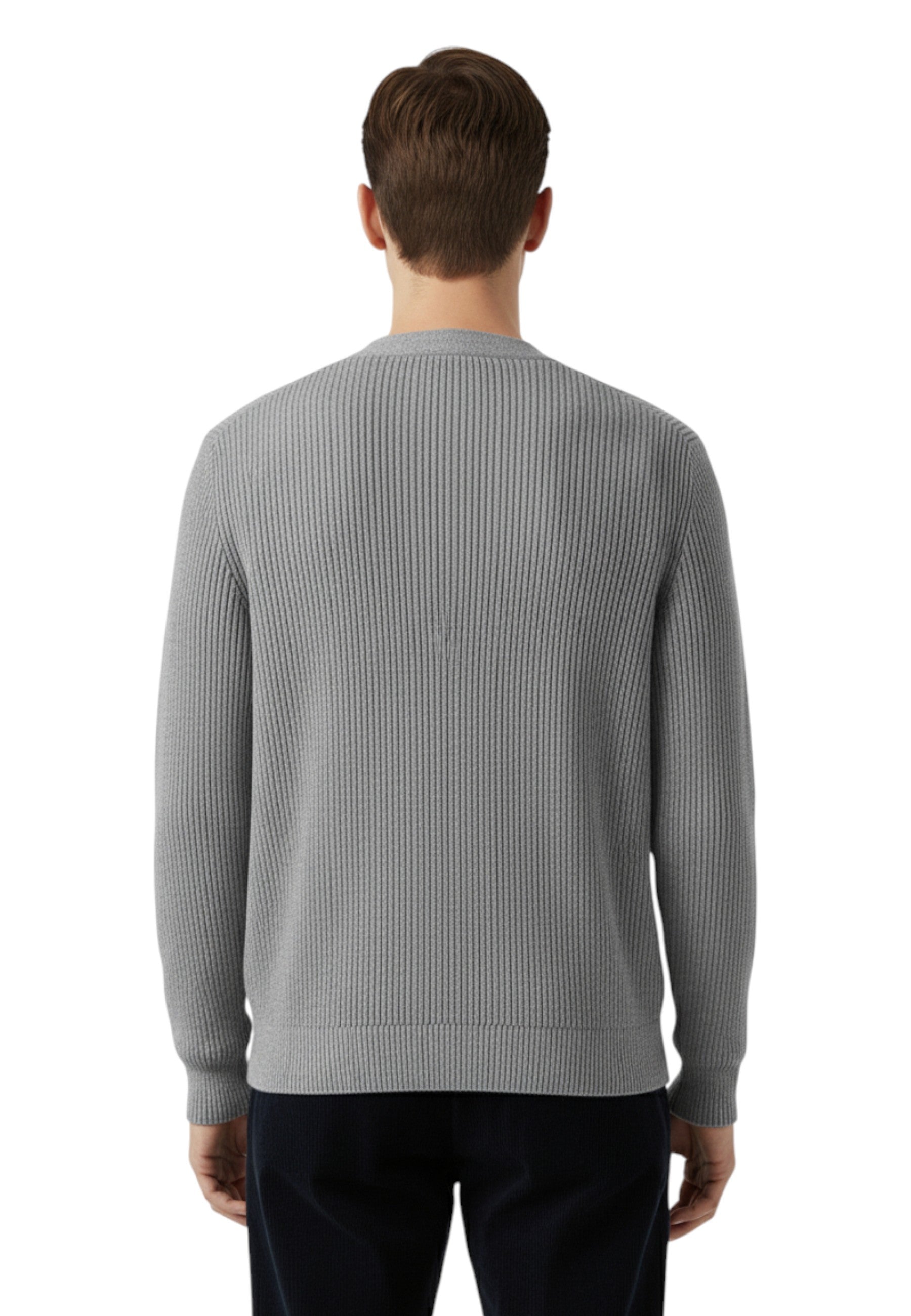 Realizzato in 100% lana merino cardata con lavorazione a coste inglesi finezza 7, è pensato per offrire calore, resistenza e stile senza sforzo. Il colore grigio melange lo rende facile da abbinare, mentre il taglio regolare e lo scollo a V lo rendono ideale sia sopra una t-shirt che con una camicia per un look smart-casual sempre curato.