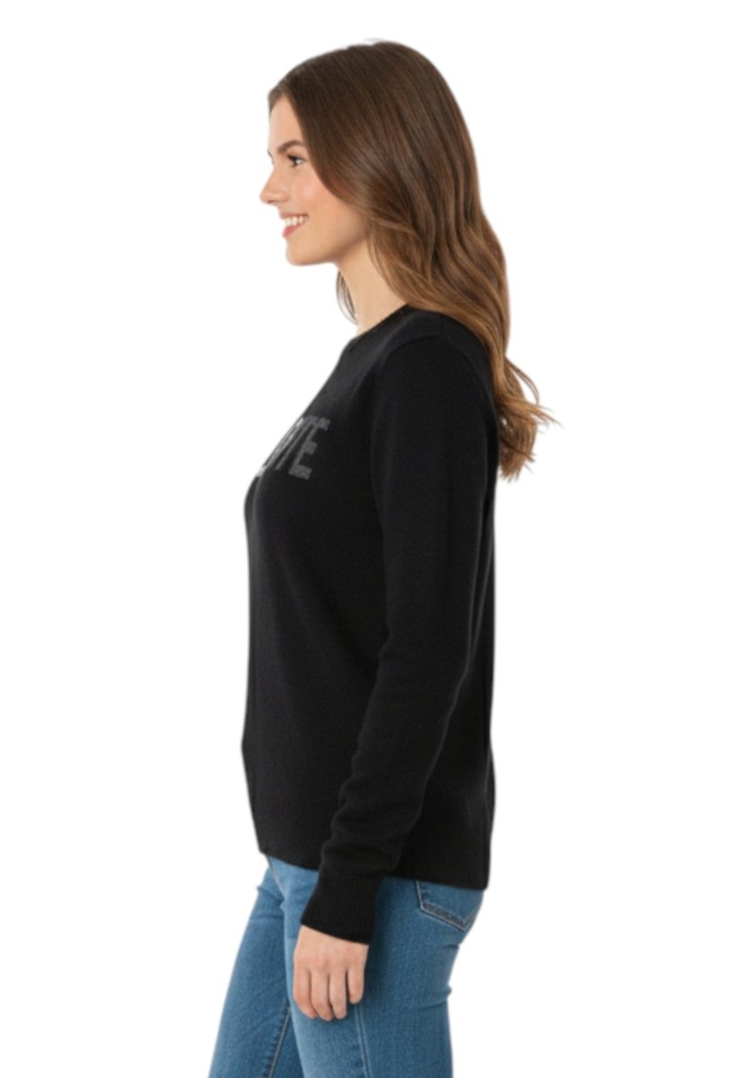 Dettaglio: Scritta jacquard con strass “Brillante”