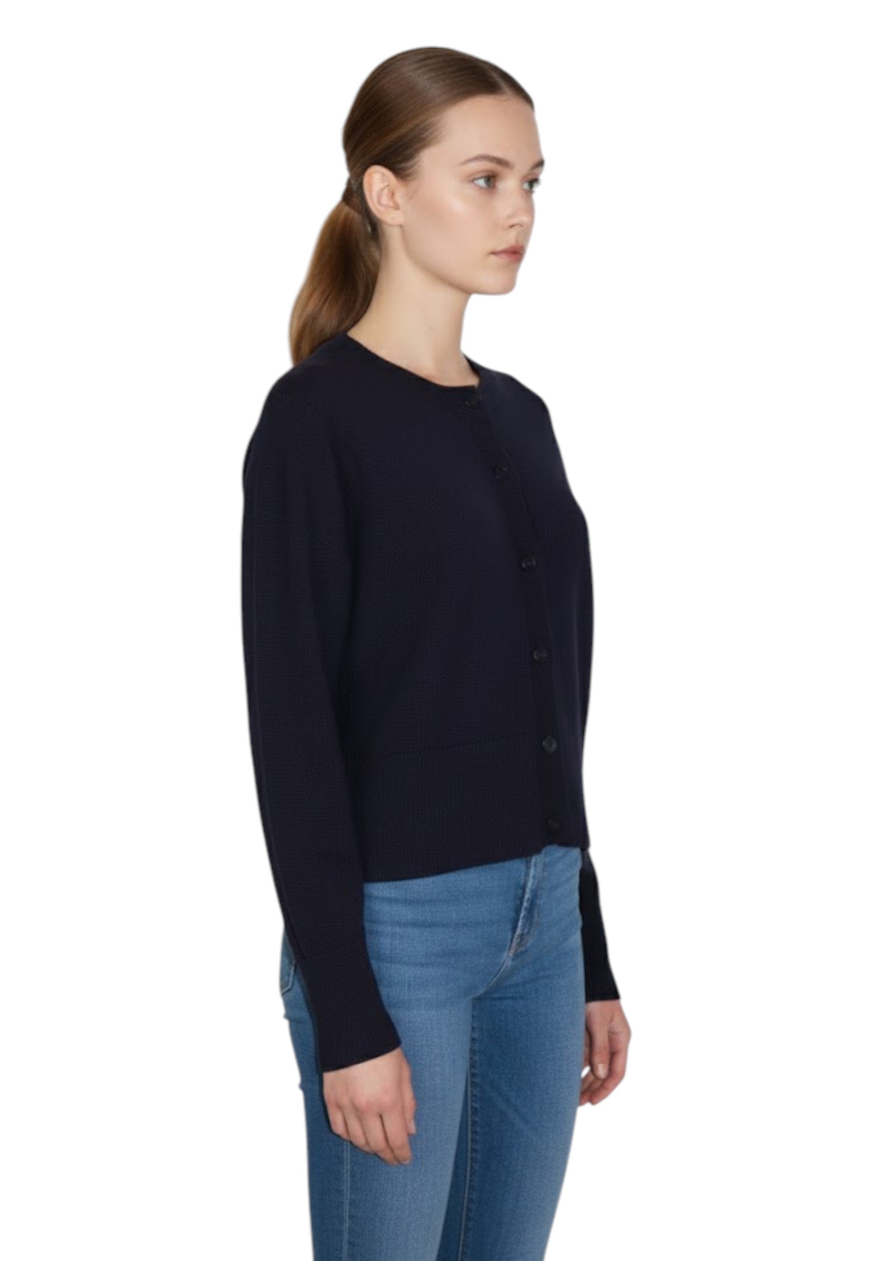 Realizzato con lana merino extrafine, questo cardigan offre una sensazione di morbidezza e calore che avvolge il corpo in un abbraccio confortevole. La sua versatilità lo rende ideale per ogni occasione, dall'ufficio al tempo libero. Il design classico e il taglio moderno esaltano ogni outfit, conferendogli un tocco di eleganza e semplicità.