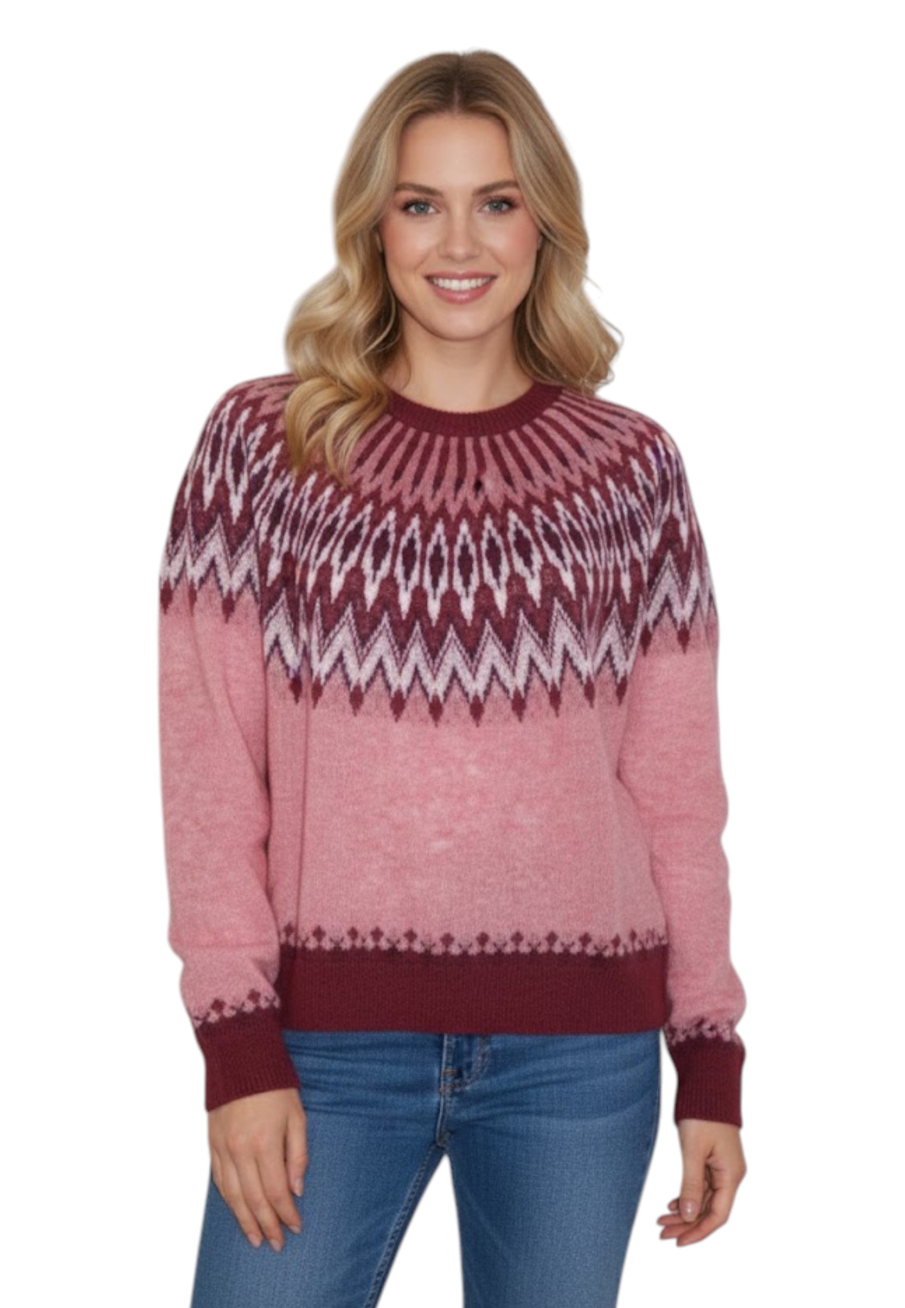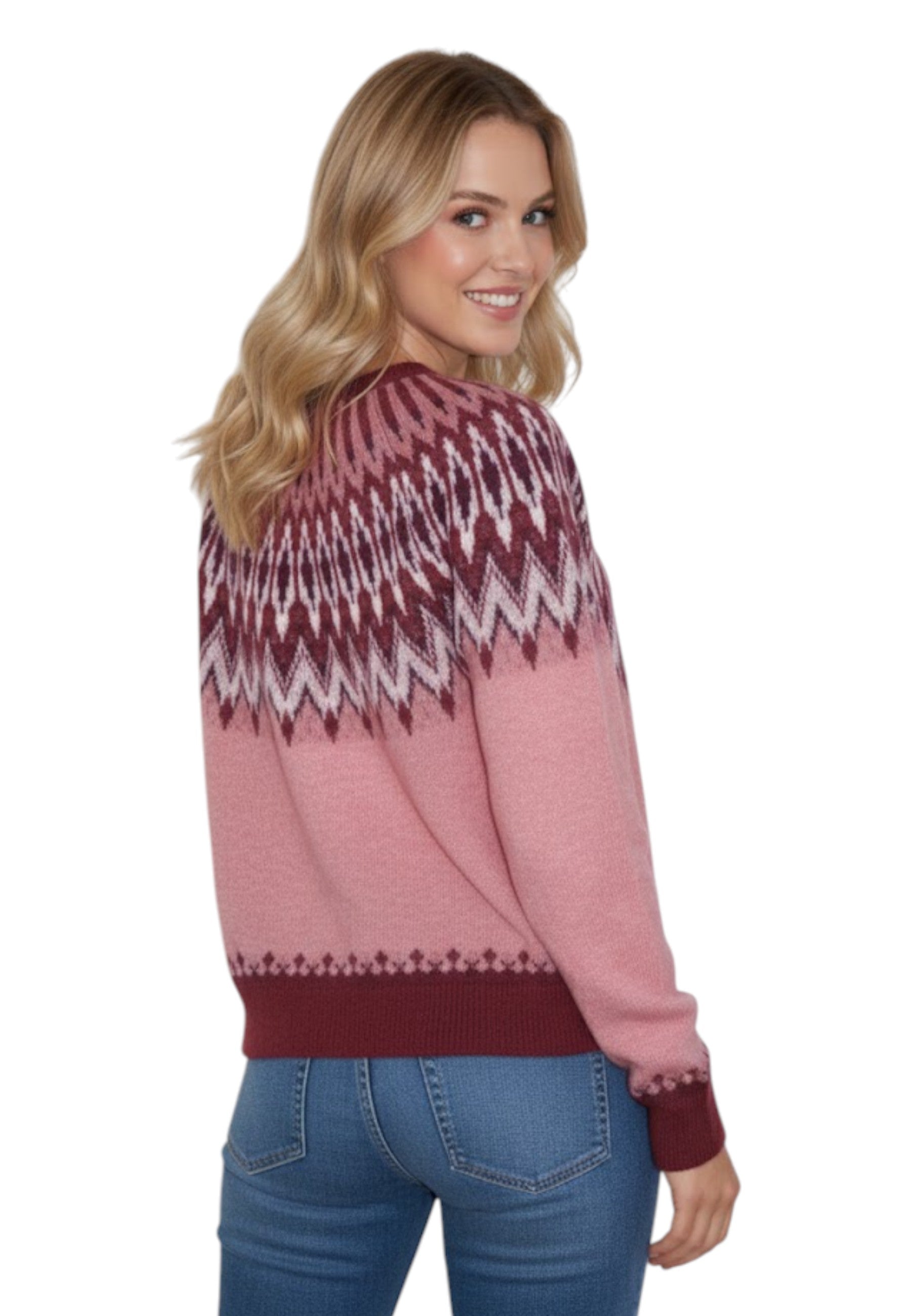 Realizzato in una preziosa miscela di alpaca (45%), poliammide (35%) e lana (20%), questo maglione unisce calore, leggerezza e morbidezza in un design raffinato e senza tempo. Il motivo jacquard dona un tocco grafico e artigianale che valorizza ogni outfit con personalità.