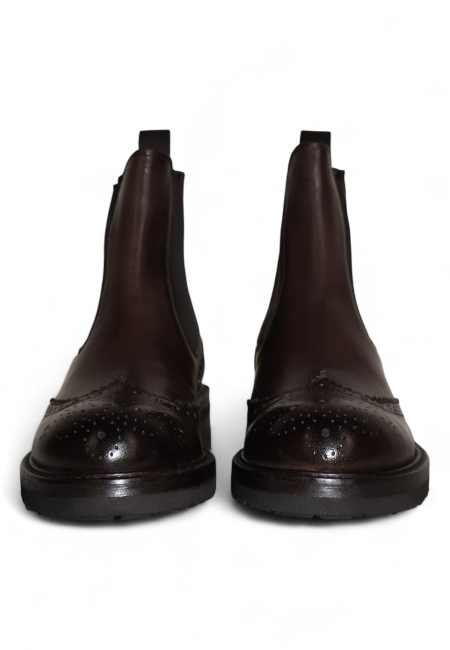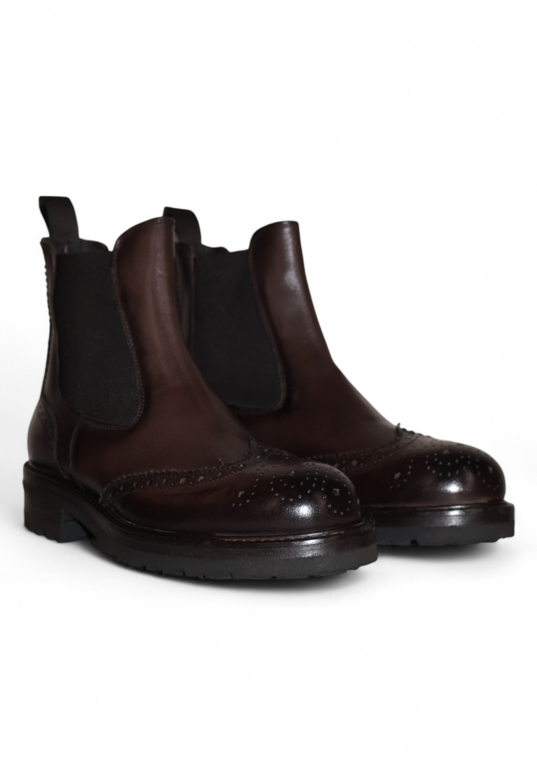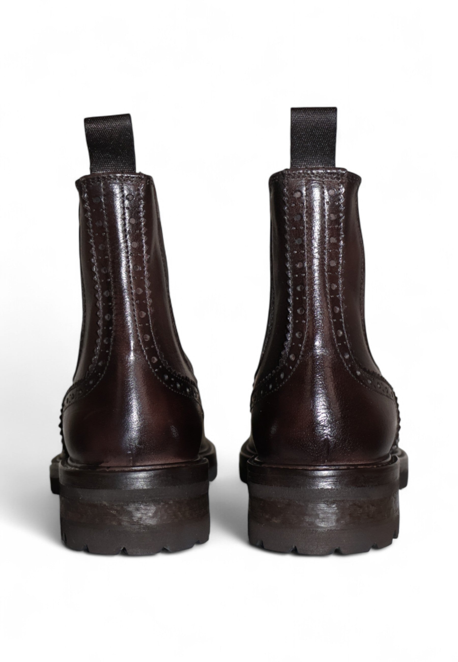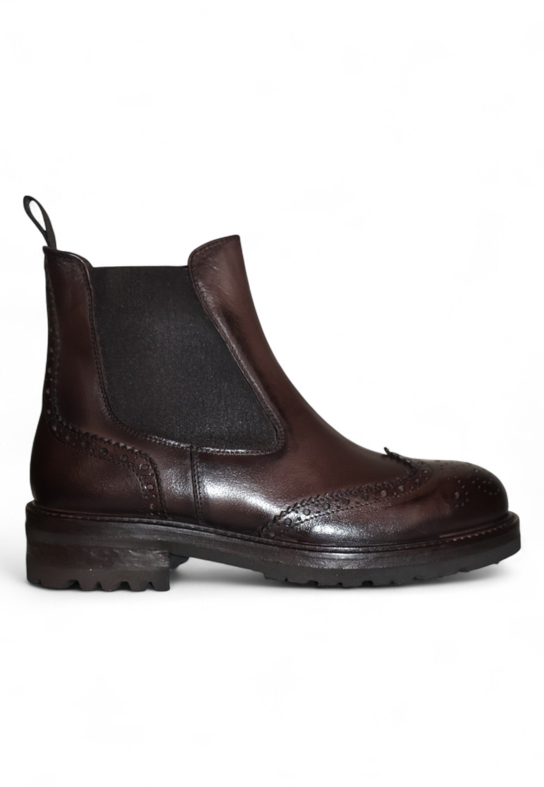 Stivaletto dallo stile intramontabile con raffinata lavorazione a coda di rondine. Il dettaglio elastico laterale garantisce una calzata pratica e confortevole, mentre il fondo in gomma assicura aderenza e stabilità su ogni superficie. Una scarpa che unisce tradizione artigianale e funzionalità moderna, perfetta per distinguersi con eleganza.