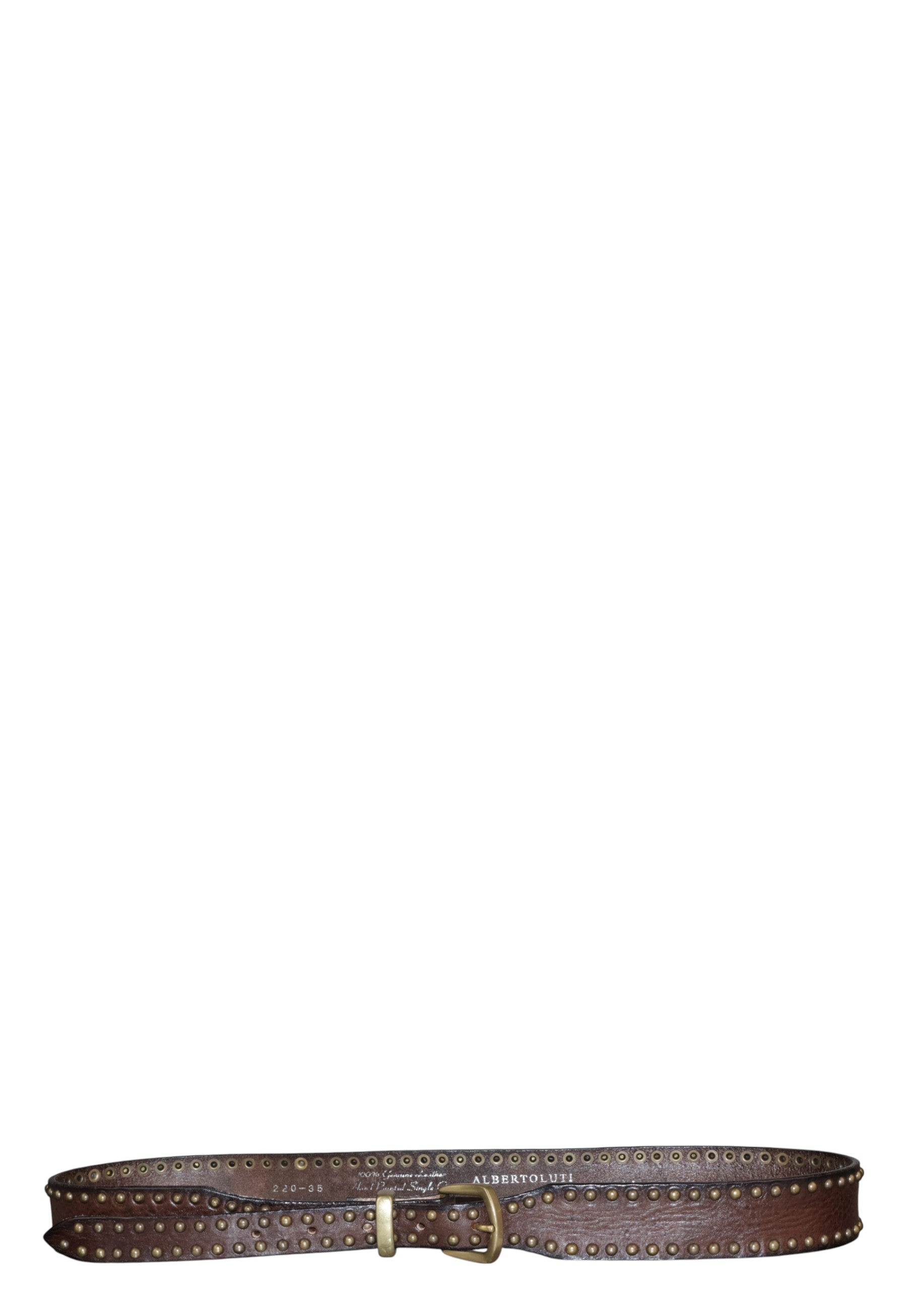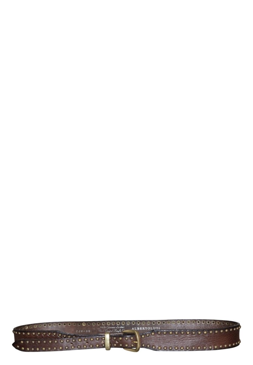 Scopri la raffinata cintura in pelle di ALBERTO LUTI, il complemento perfetto per aggiungere un tocco di eleganza a qualsiasi outfit. Realizzata con materiali di alta qualità, questa cintura è l'ideale per chi cerca stile e durabilità in un singolo accessorio. Il design intricato dei rivetti aggiunge un elemento distintivo, mentre la fibbia in metallo dorato esalta la sua sofisticatezza.