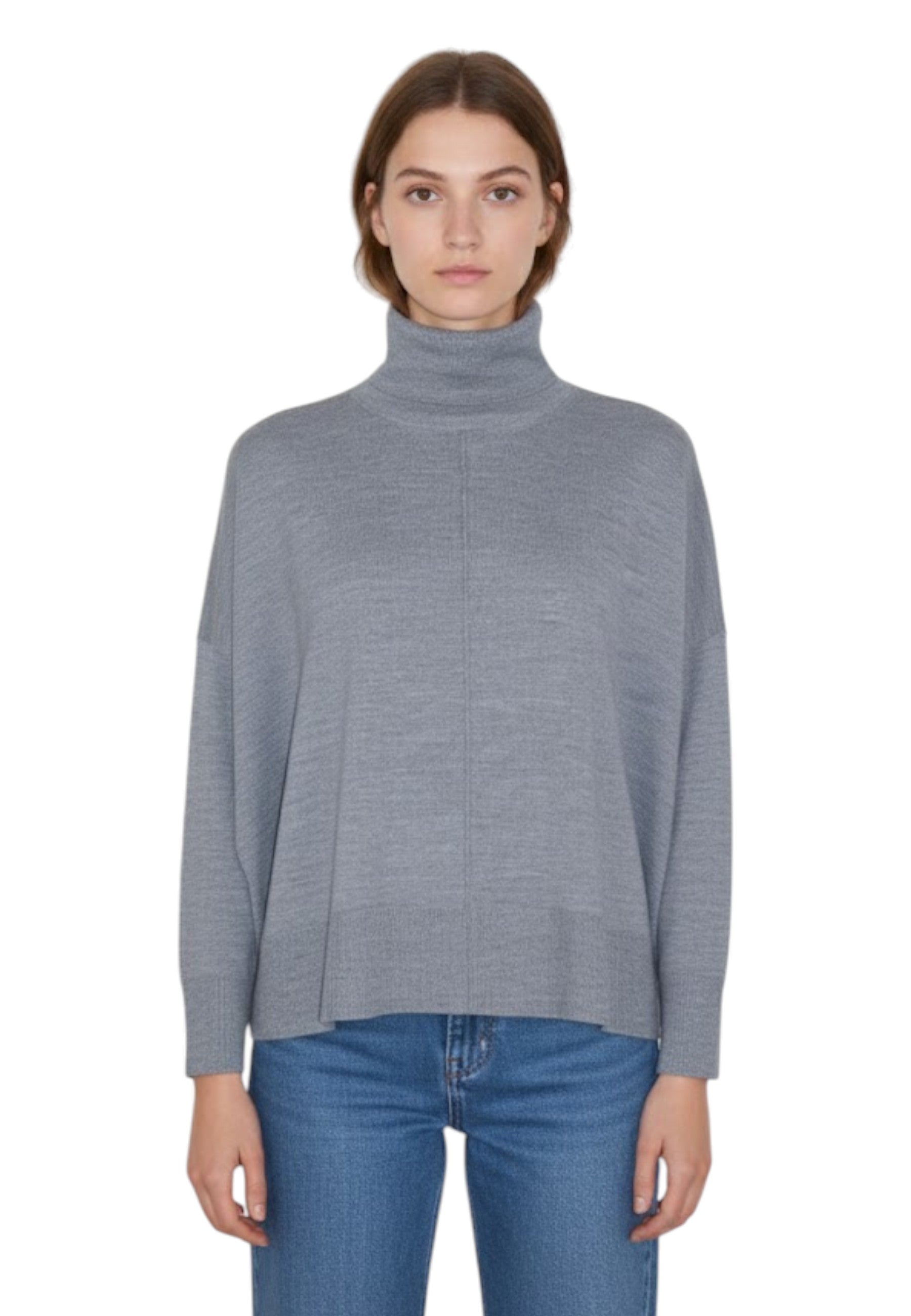 Il design dal taglio pulito e la tonalità neutra lo rendono facile da abbinare a diversi outfit, dai jeans casual alle gonne eleganti. La morbidezza del materiale offre un comfort duraturo, mentre il collo dolcevita aggiunge un tocco di raffinatezza.