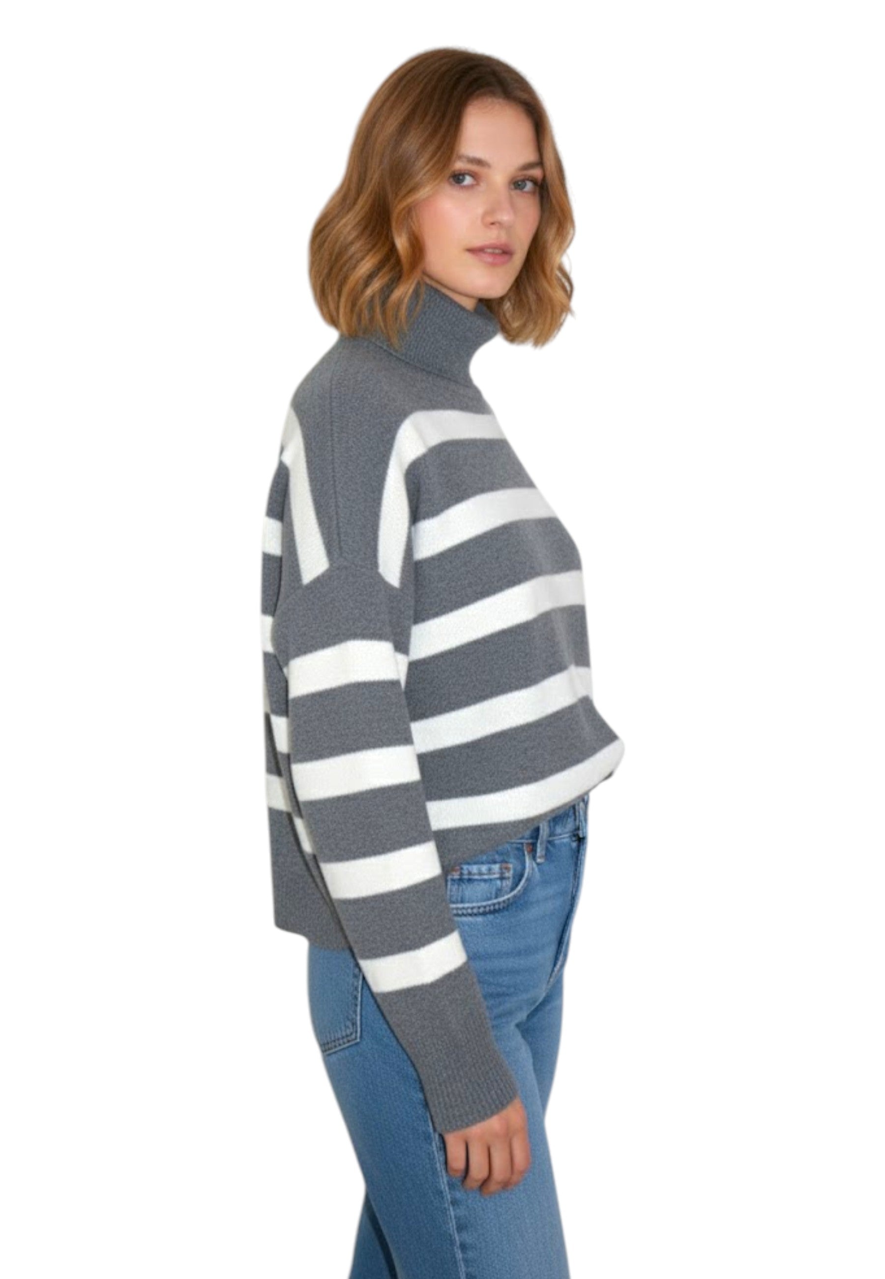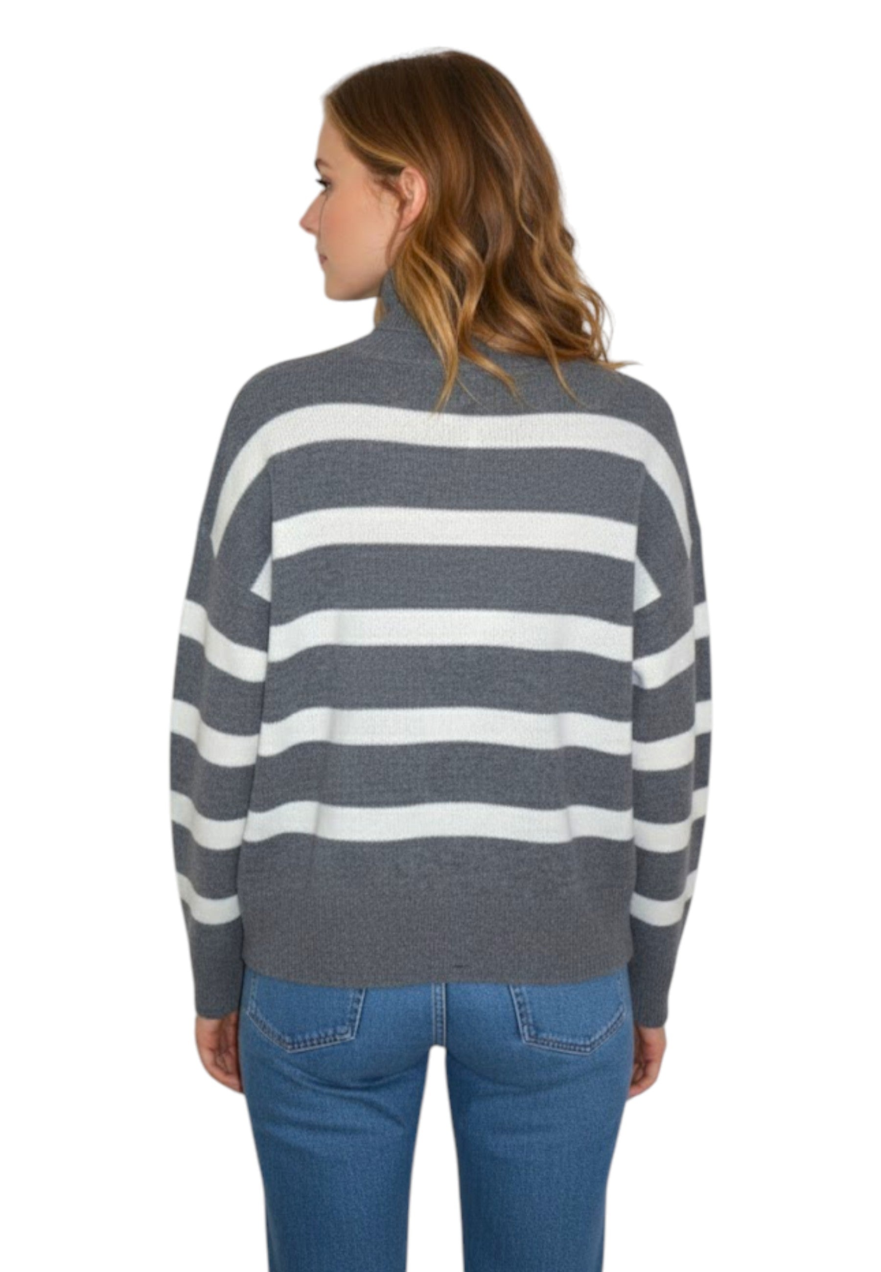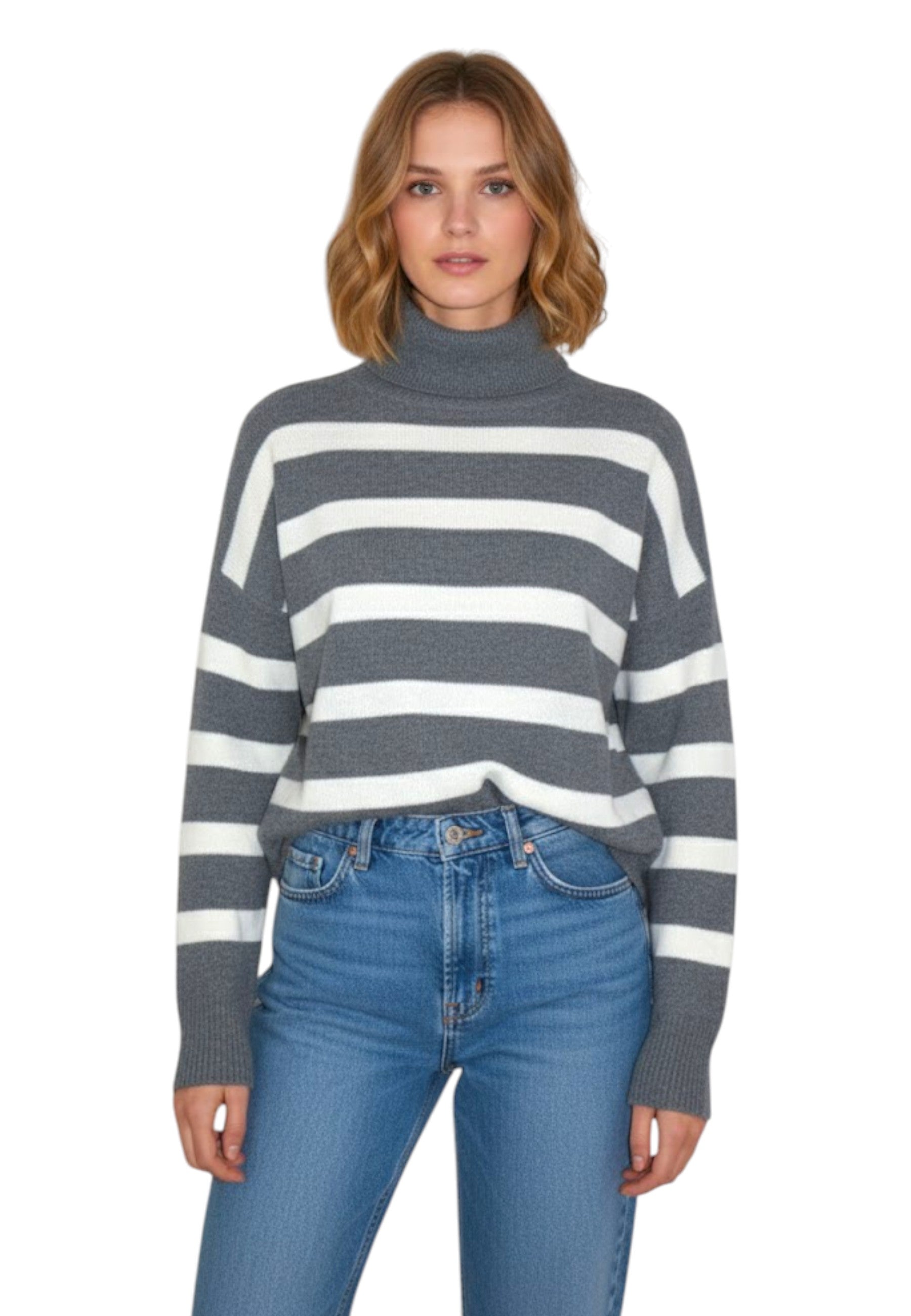 Realizzata in un blend di lana e poliammide, questa maglia offre una vestibilità morbida e resistente, perfetta per un uso quotidiano. Le righe orizzontali aggiungono un tocco di modernità e dinamismo al tuo look. Abbinabile facilmente a jeans o pantaloni eleganti, si presta a molteplici outfit: da un casual chic per l'ufficio a un look più rilassato per il weekend.