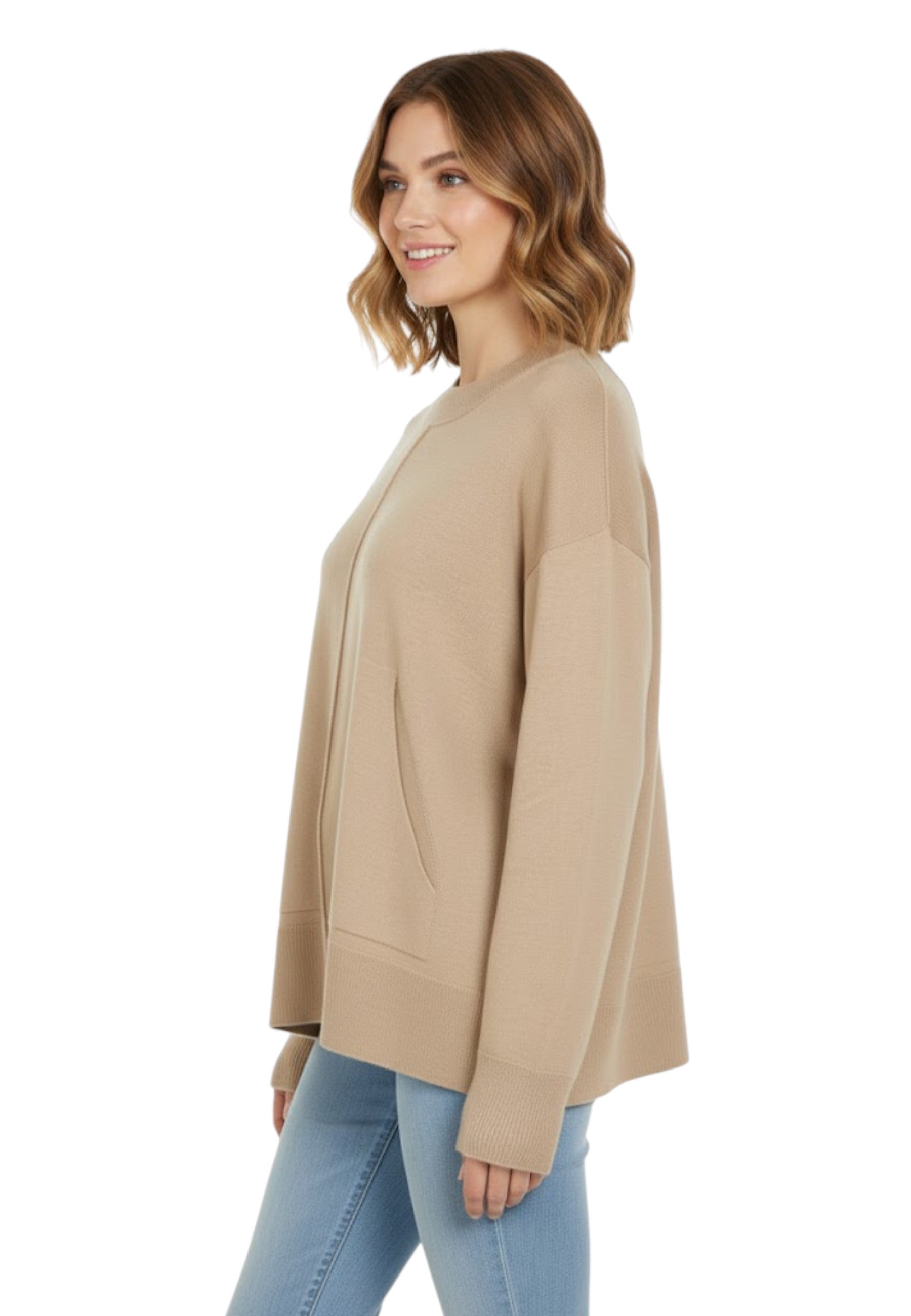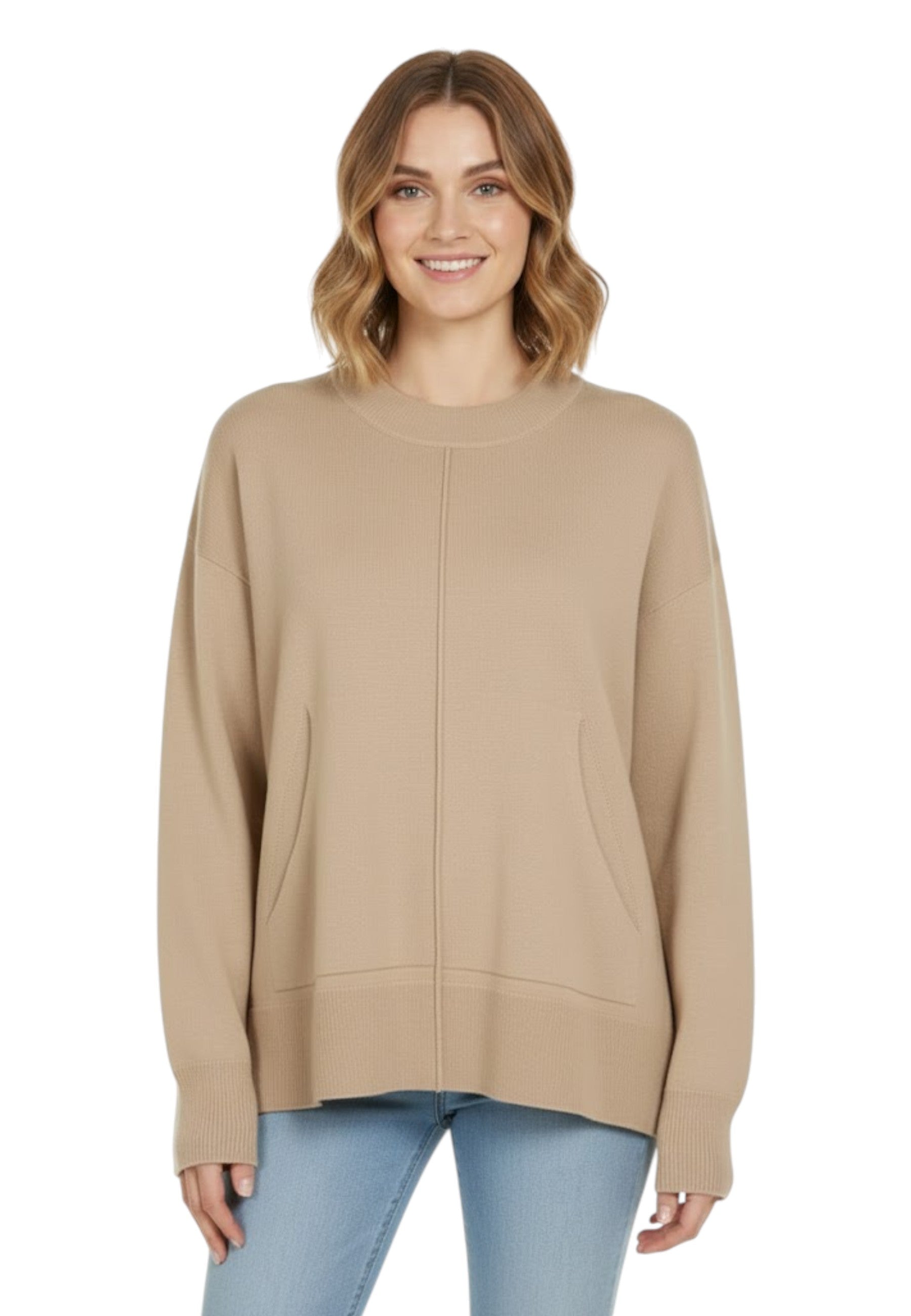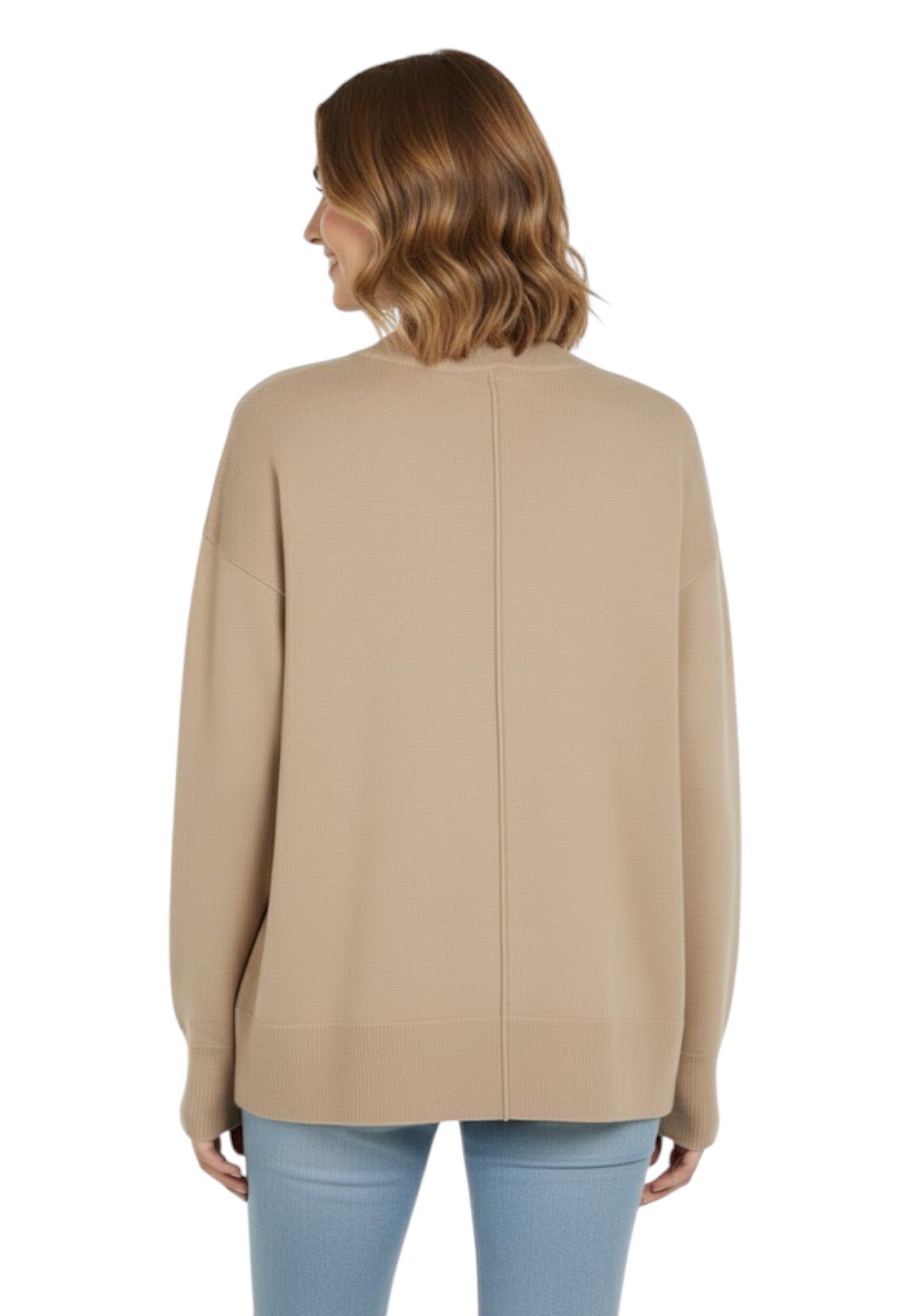 Questo maglione è realizzato con una miscela perfetta di lana e acrilica, offrendo un calore avvolgente senza rinunciare alla leggerezza e alla morbidezza. Il design semplice ma elegante lo rende ideale per abbinamenti casual e chic.