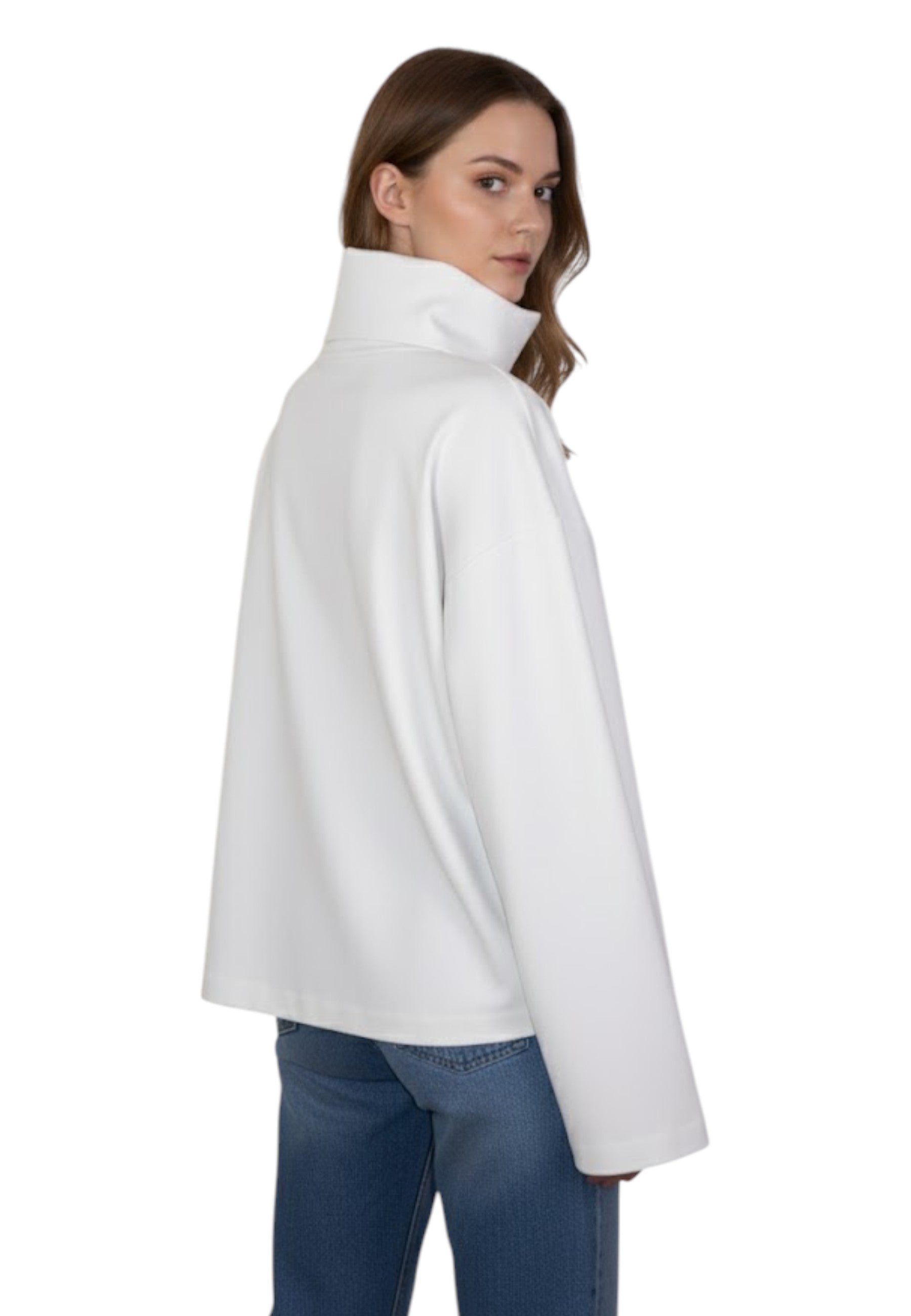 Il design classico a dolcevita e le linee essenziali lo rendono facile da abbinare a gonne, pantaloni o jeans,