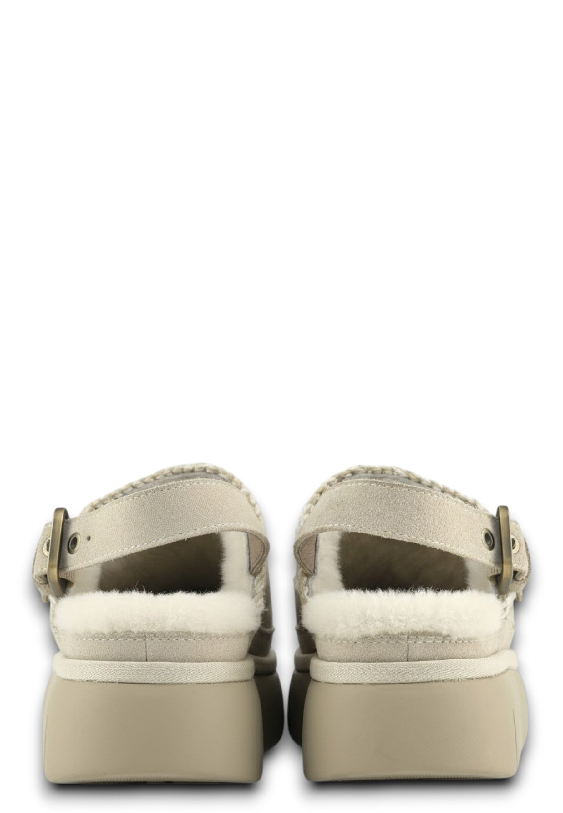 Novità AI 2025, il Bounce Clog Backstrap “LETTE – CHLK Chalk” by Mou è un perfetto equilibrio tra estetica contemporanea e comfort artigianale. Realizzato a mano in vera pelle di camoscio, è arricchito dai tipici dettagli in lana all’uncinetto firmati Mou e da un elegante logo in metallo applicato con discrezione.