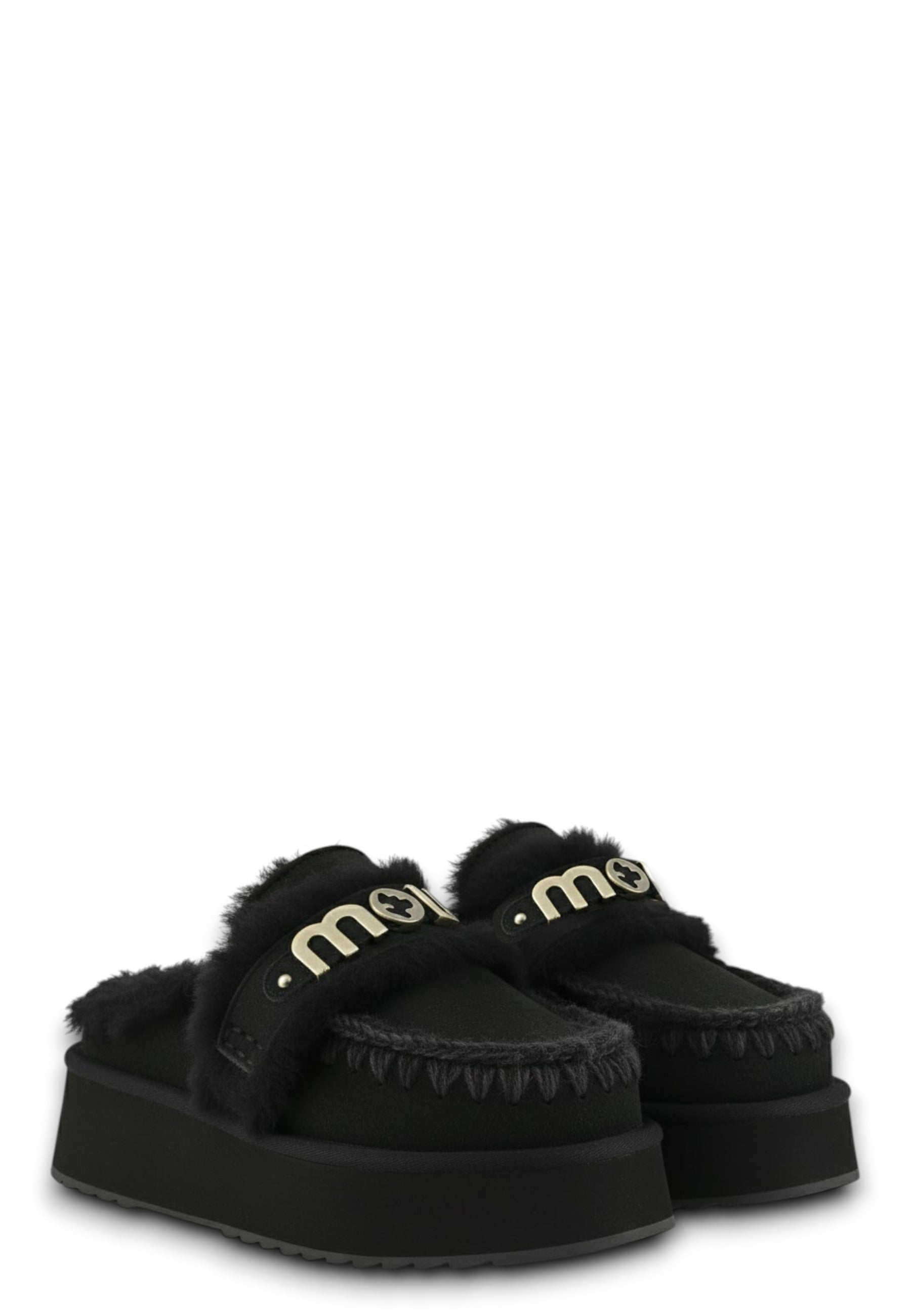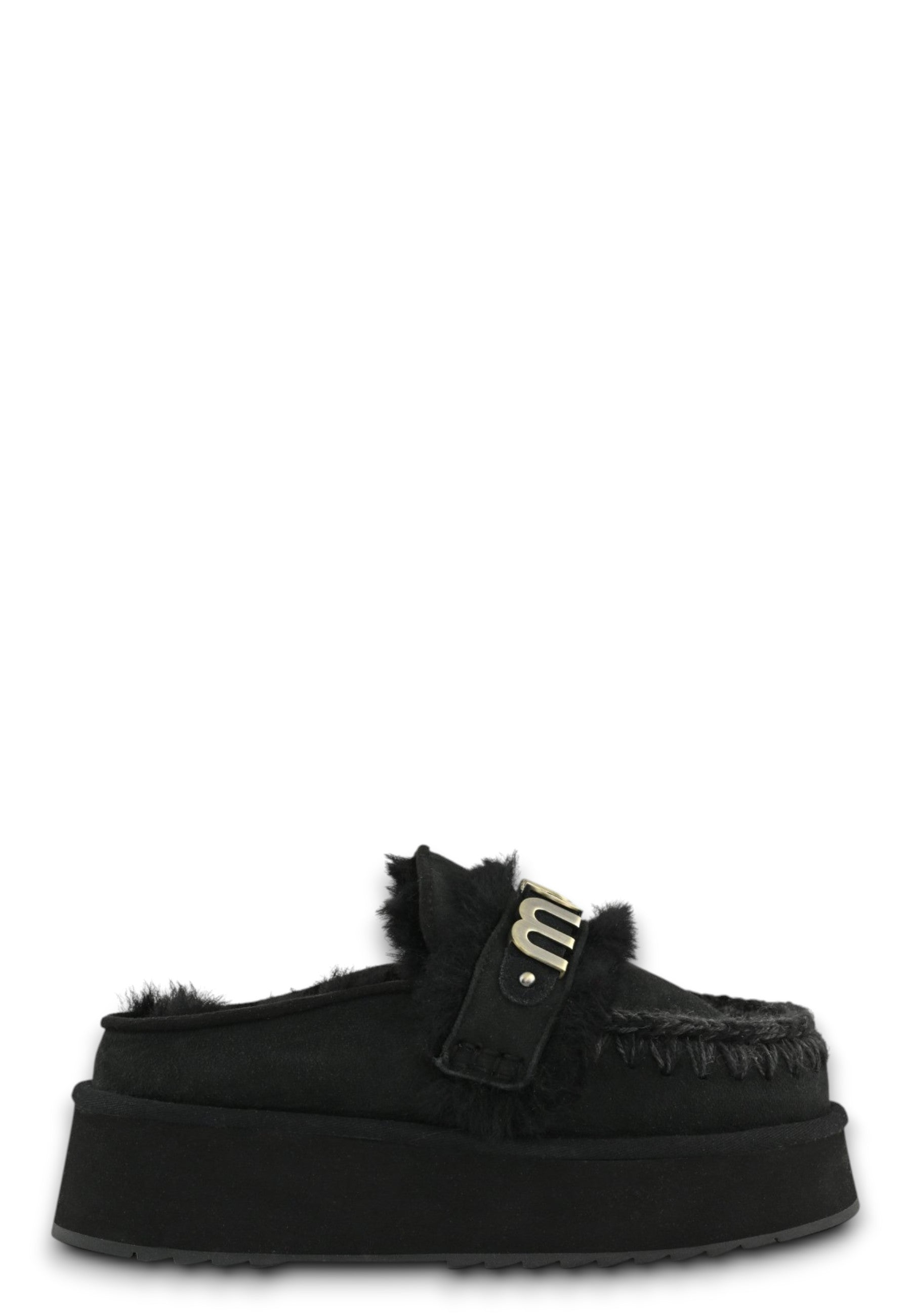 Realizzato artigianalmente con maestria, il clog Mou è costruito in vero montone double-face (shearling) per assicurare un calore eccezionale e una morbidezza ineguagliabile. Il design è impreziosito dagli inconfondibili e sofisticati dettagli in lana all'uncinetto firmati Mou, in un elegante tono su tono nero. La suola in gomma EVA offre un comfort ammortizzato e una durabilità superiore, completata da un'altezza platform di tendenza.