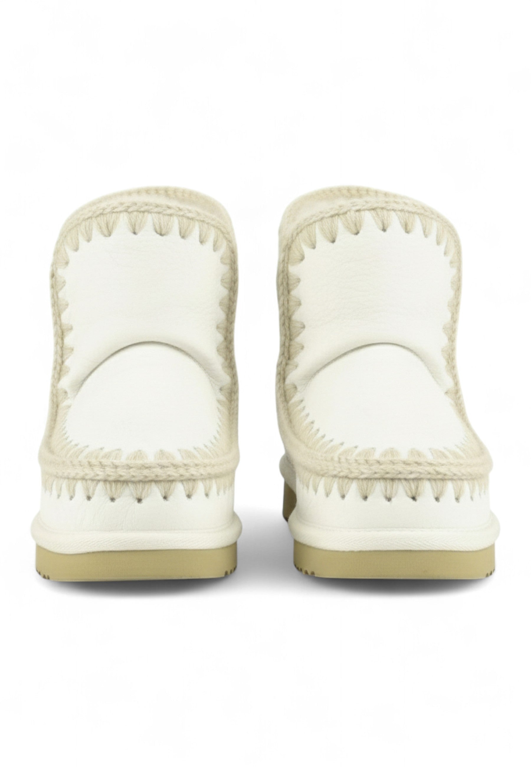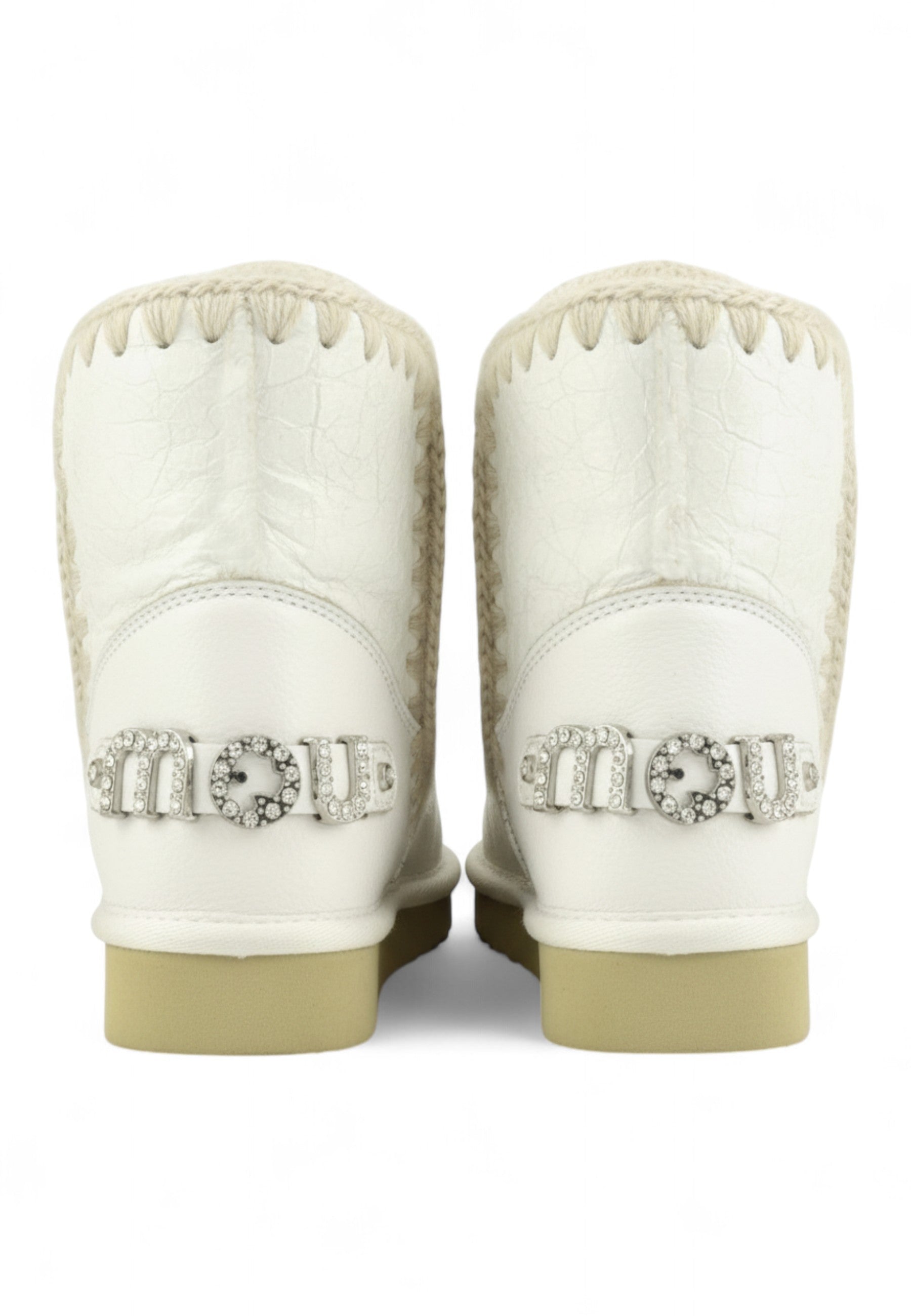 Brilla con stile anche nelle giornate più fredde grazie all’Eskimo 18 di MOU, impreziosito dal logo in strass. Questo iconico modello in tonalità Waxi White è realizzato artigianalmente in vera pelle di montone double-face, calda e morbida, con cuciture in lana all’uncinetto che ne esaltano l’estetica handmade. Il tallone rinforzato e la suola in EVA & gomma garantiscono resistenza e comfort assoluto, mentre l’altezza di 18 cm dona slancio e protezione. Perfetto per affrontare l’inverno con un tocco glamour e una vestibilità impeccabile.