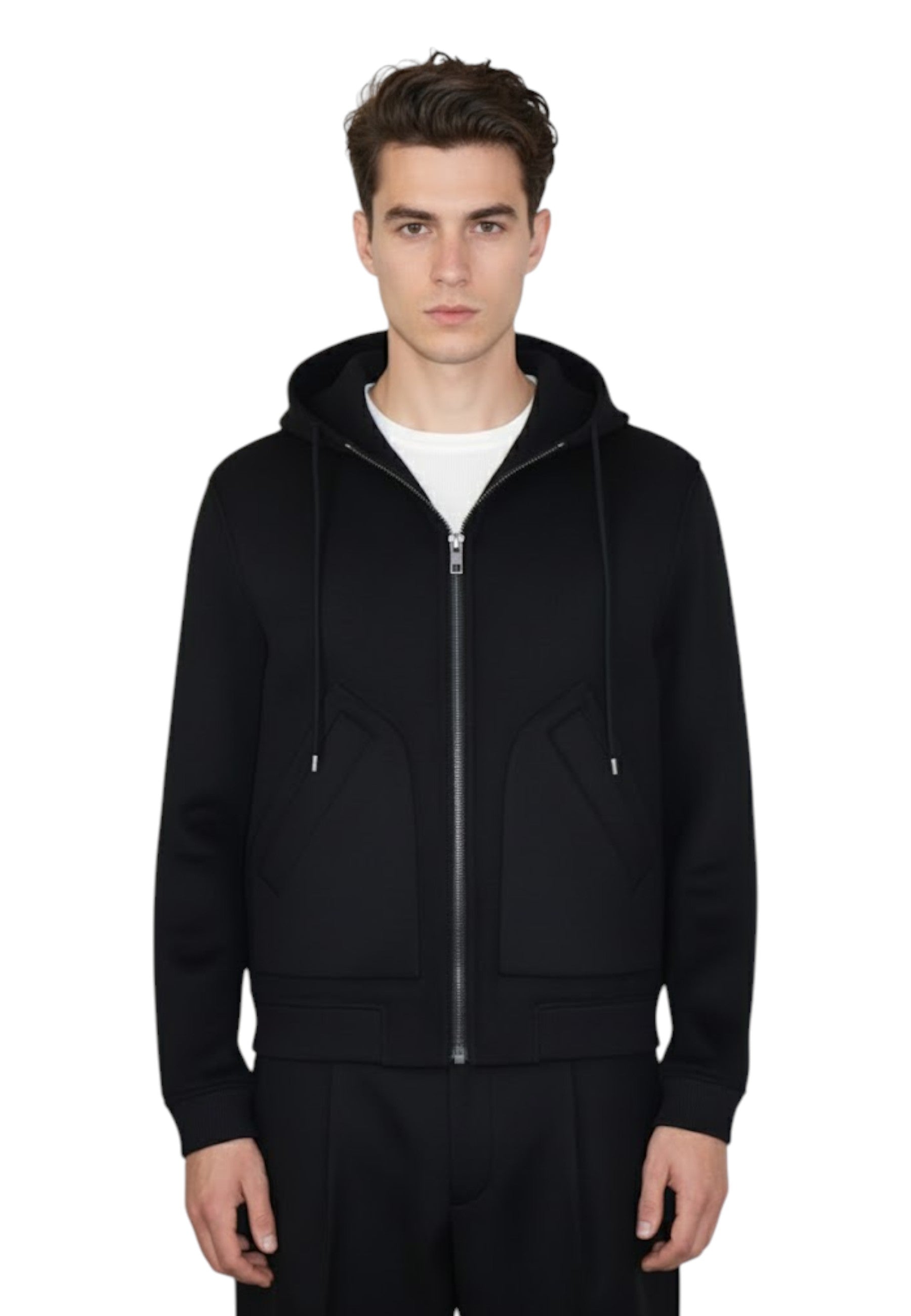 - Dettagli: Tasche con zip diagonali, cappuccio regolabile con cordini