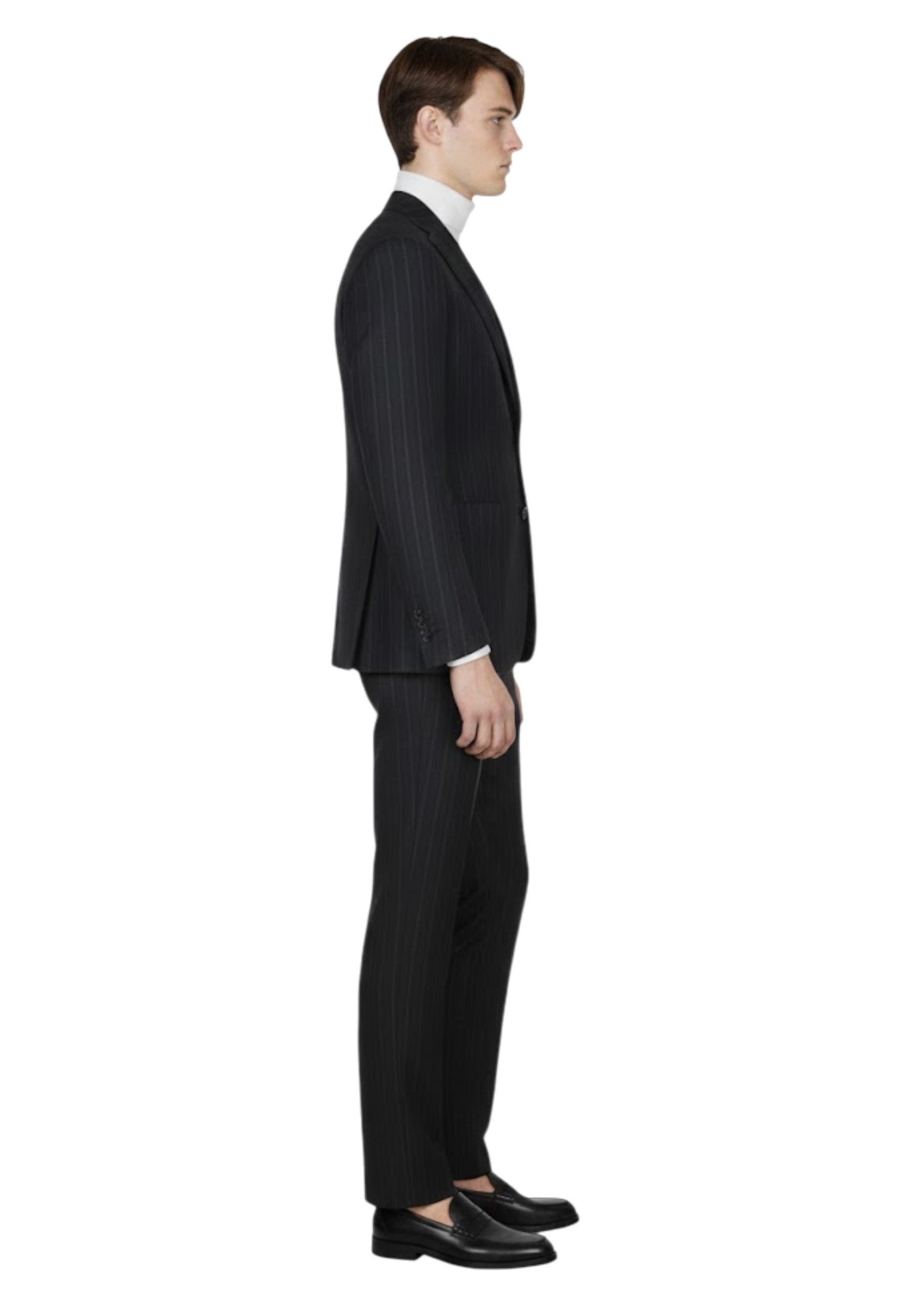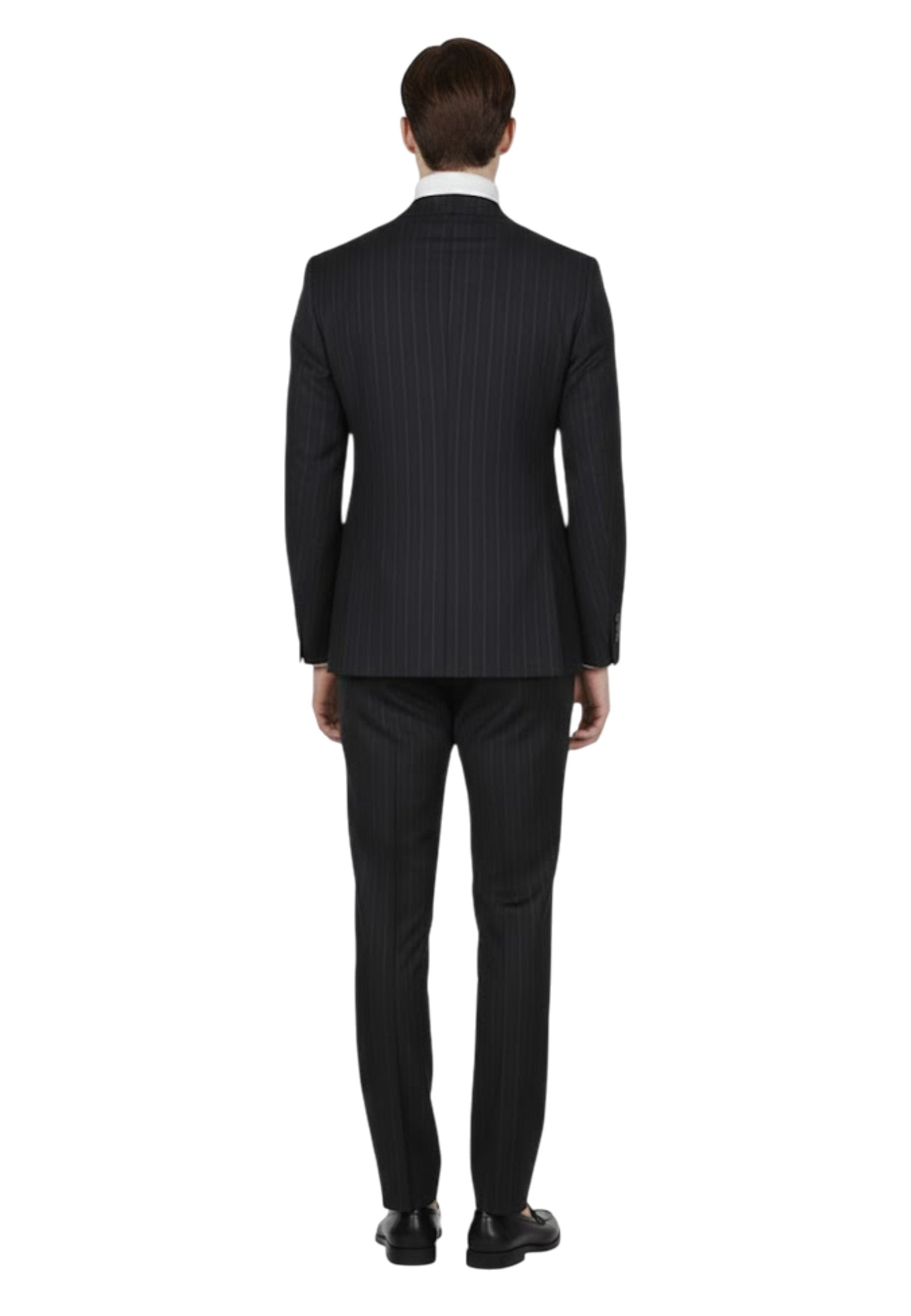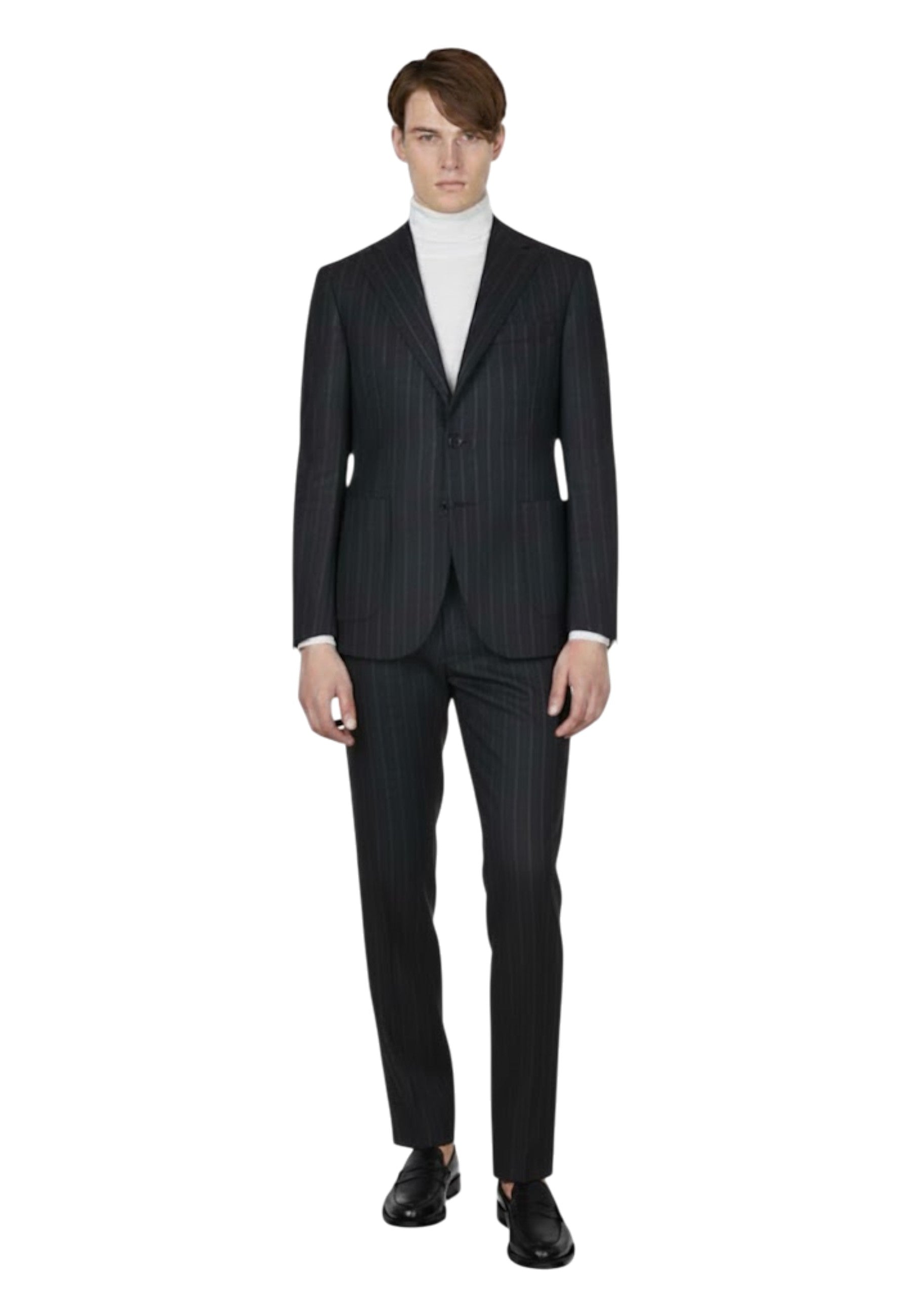L'abito è confezionato con cura in lana, un materiale noto per il suo comfort e la sua capacità di mantenere la forma a lungo. Il design a righe sottili aggiunge un tocco di classe, rendendolo versatile per eventi formali e riunioni di lavoro.