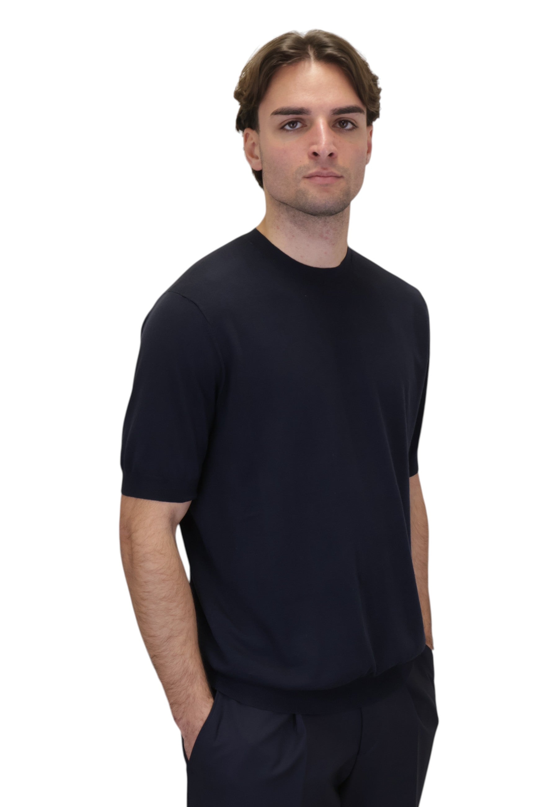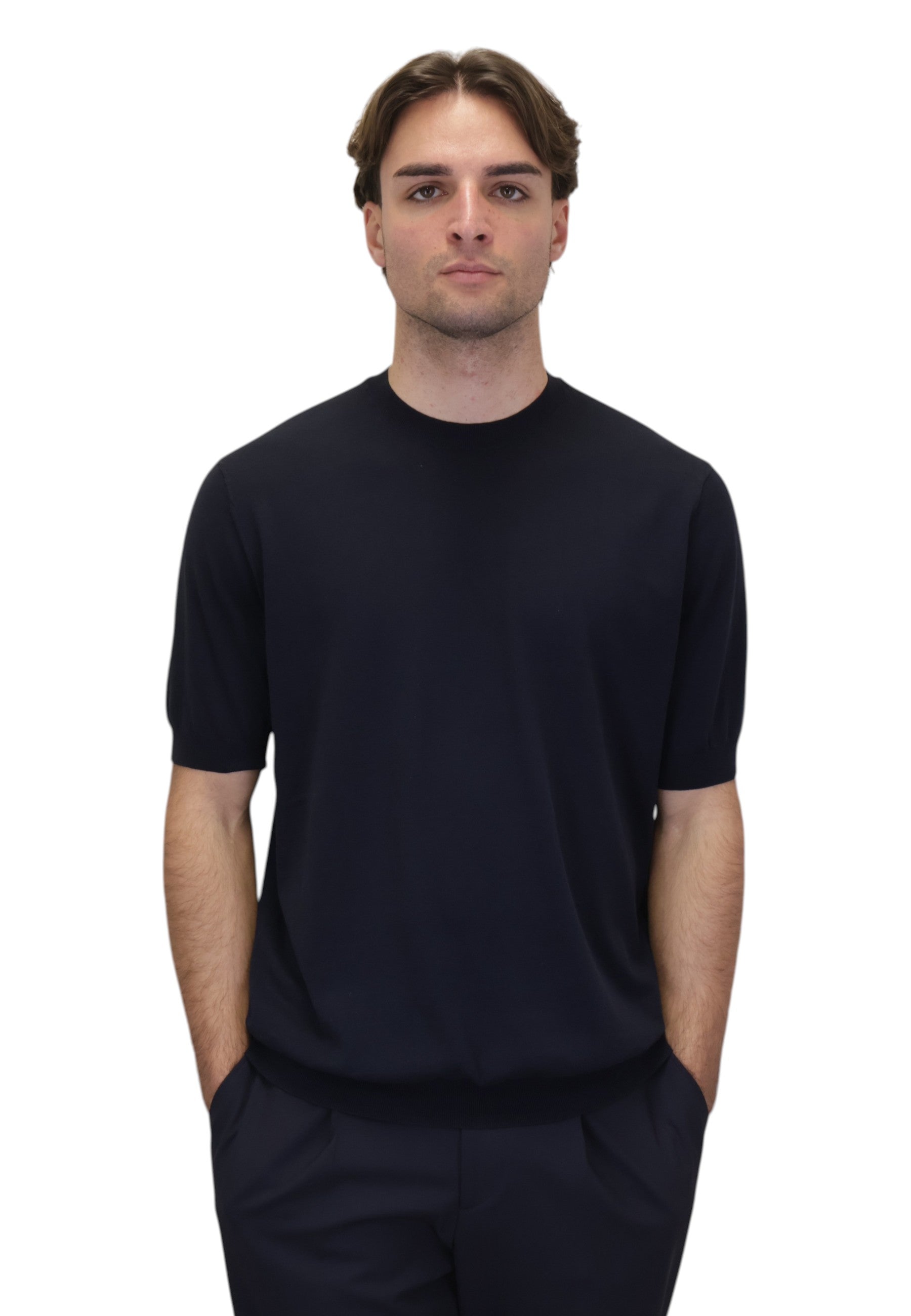 maglia in cotone e seta - 01r navy