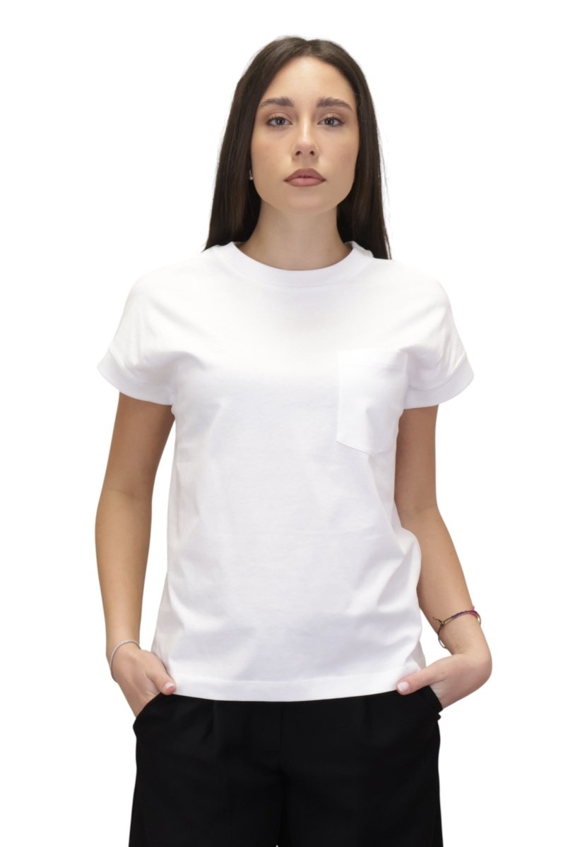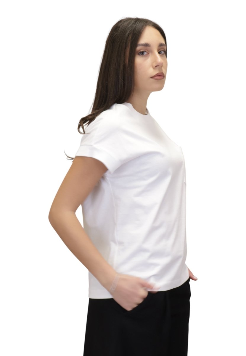 Questa T-shirt in cotone da donna unisce qualità dei materiali e cura dei dettagli, caratteristiche distintive del brand, offrendo uno stile semplice ma ricercato. Per preservarne morbidezza e forma nel tempo si consiglia il lavaggio a mano a 30 gradi. Un capo basic di alta qualità, perfetto per chi cerca una T-shirt donna elegante, confortevole e sempre attuale.