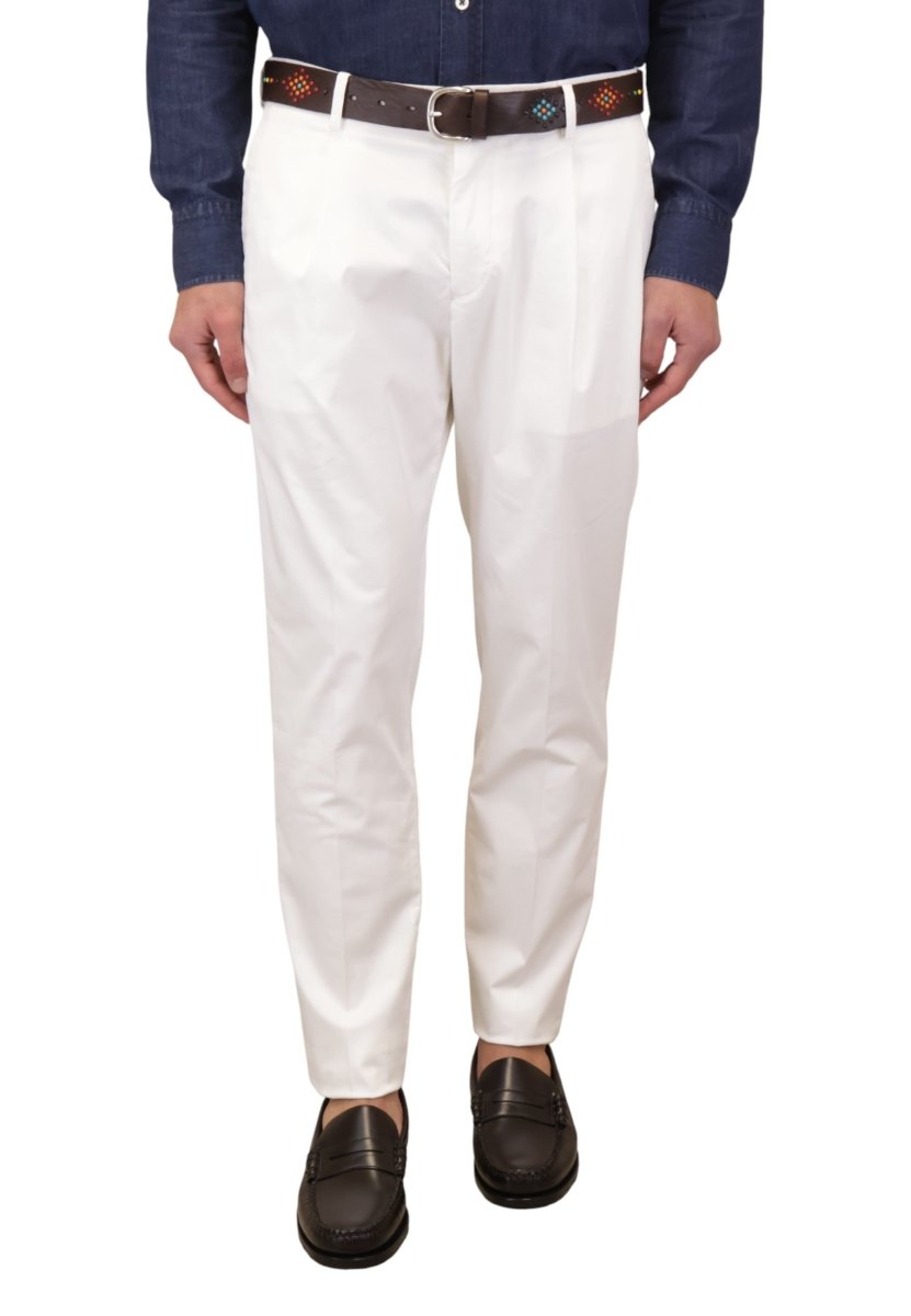 Realizzati con un'alta percentuale di cotone, questi pantaloni offrono una vestibilità confortevole e duratura. Il loro design minimalista si adatta facilmente a look sia formali che casual. Abbinalo a una camicia elegante e un paio di mocassini per un outfit perfetto per l’ufficio o una serata speciale.