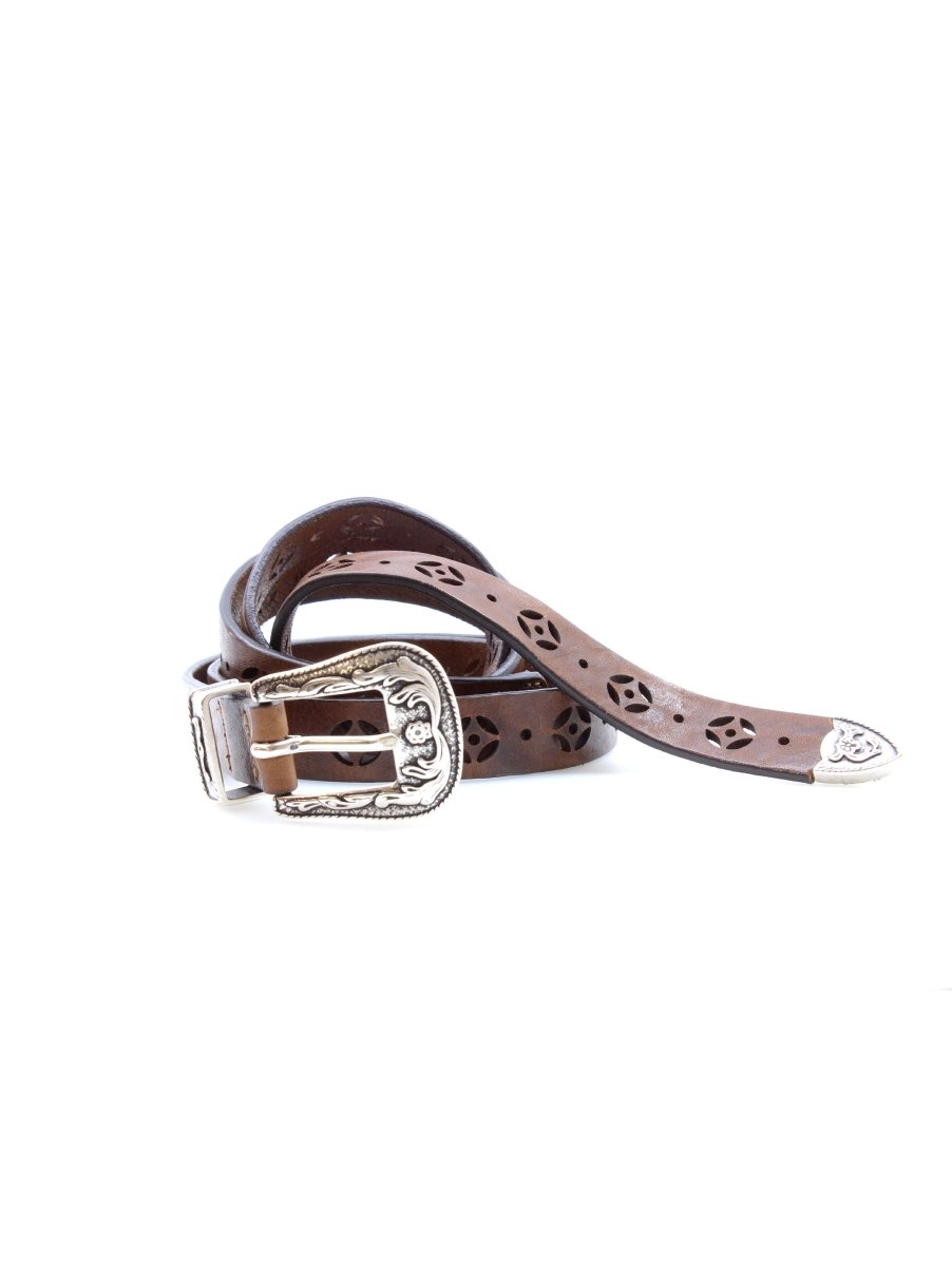 La cintura di Minoronzoni è realizzata in 100% cuoio; il modello presenta fibbia in metallo lavorata e ricami intagliati lungo il dorso della cintura.
